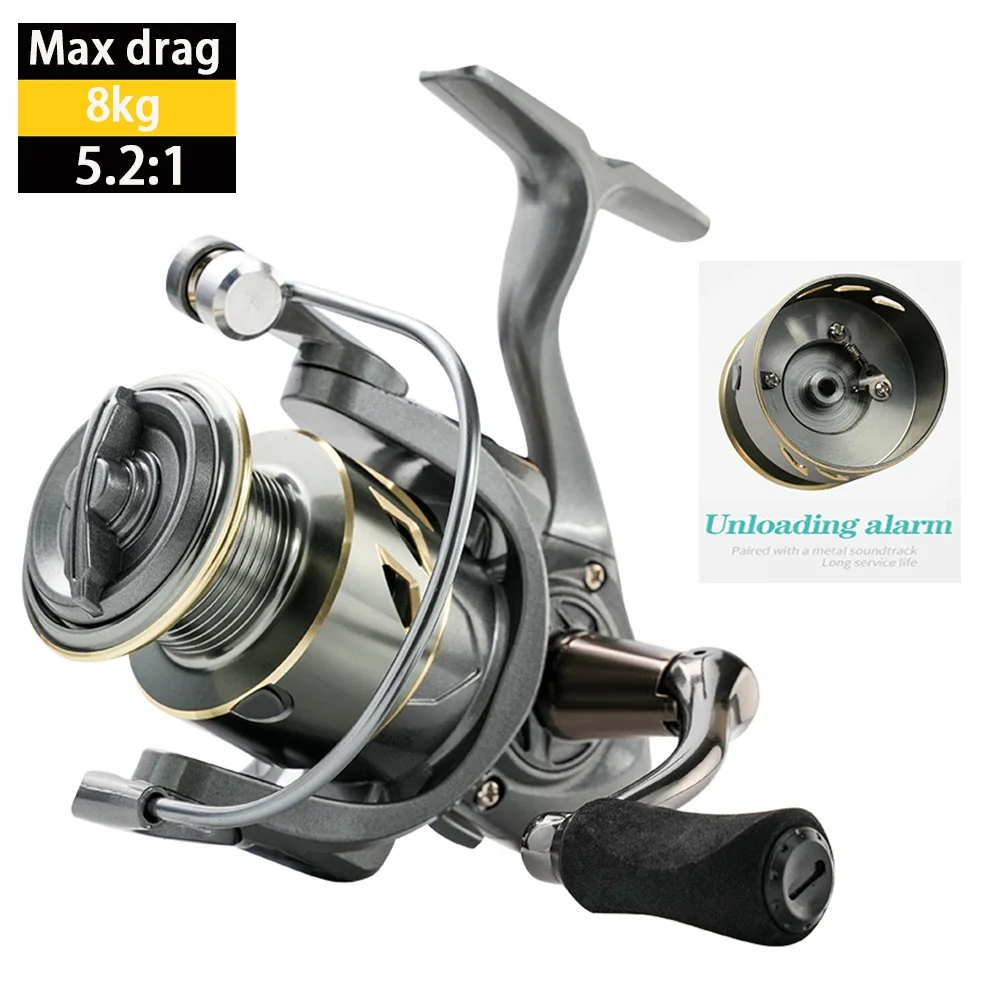 Lightweight Spinning Reel 2000 3000 4000 5000 6000 7000 Metal Wire Cup 5.2:1 Durable Fishing Tackle 8kg Max Drag for Bass Carp