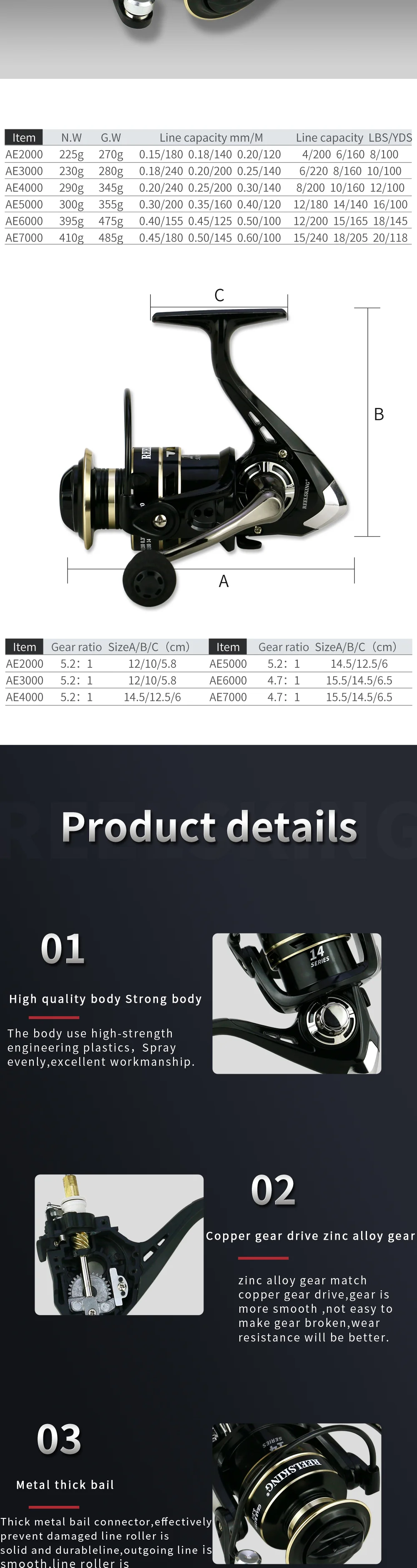 1. Copa de línea de Metal, fuerte y duradera, sin daños en el sedal.