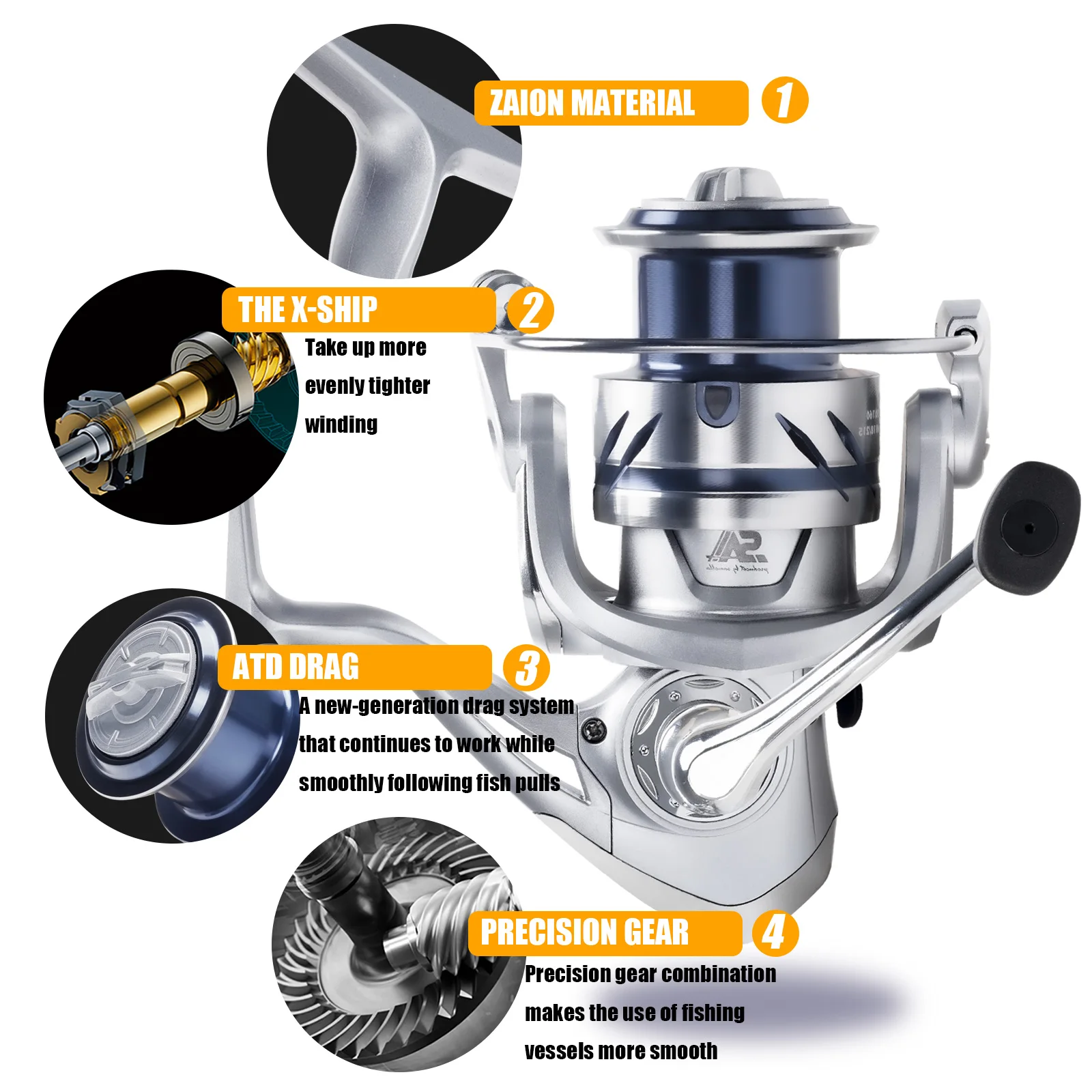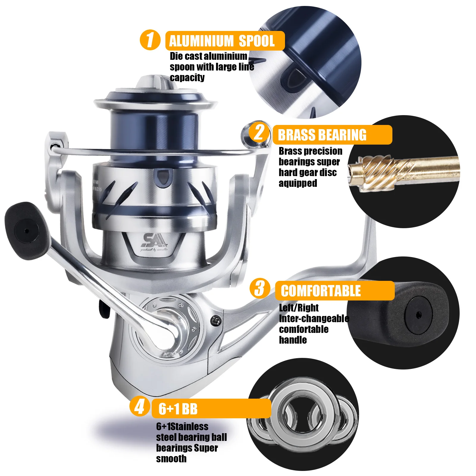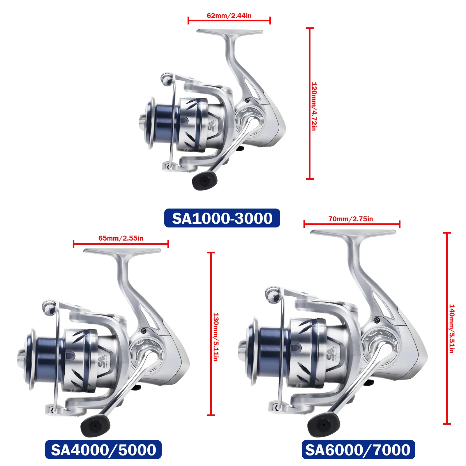 Carretes de pesca SAMOLLA, carretes giratorios 1000-7000 6 + 1BB 5,2: 1, arrastre máximo de 12KG, carrete poco profundo de tiro lejano, carretes a prueba de agua para agua salada