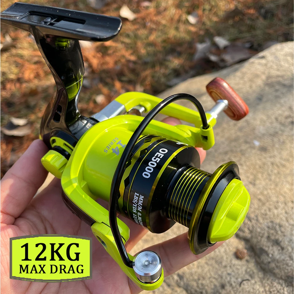 Carrete de pesca giratorio 2000 3000 4000 5000 6000 7000Serie 5,2: 1 Ultraligero Max Drag 12kg Surfcasting Carretes de Jigging de agua salada