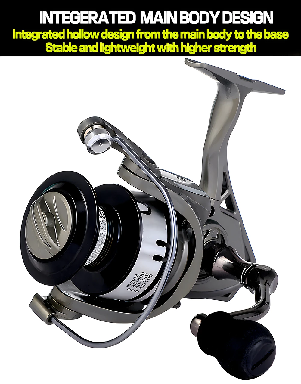 1. Copa de línea de metal de gran capacidad, resistente y duradera, no se deforma fácilmente, y la salida de la línea es suave sin dañar la línea de pesca.