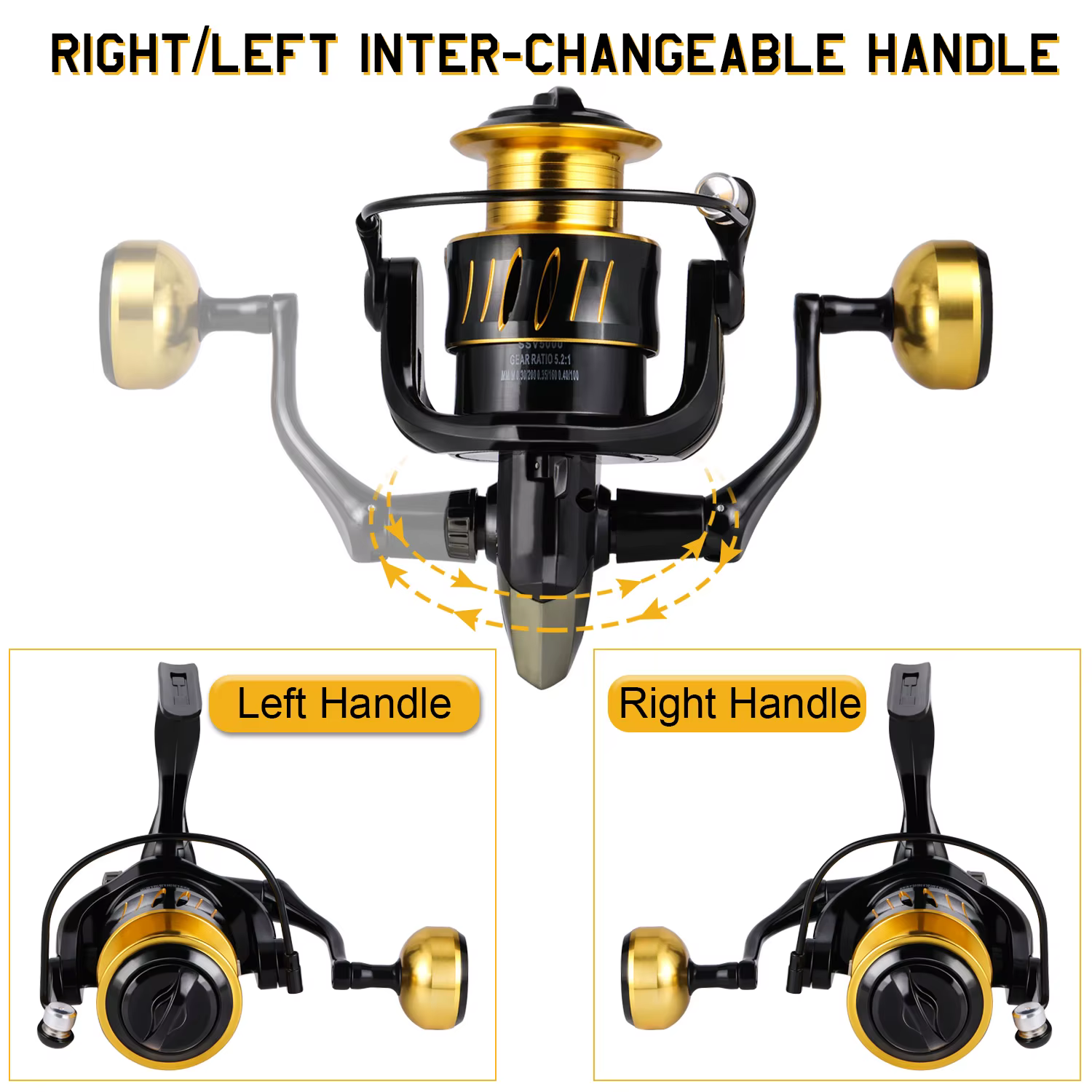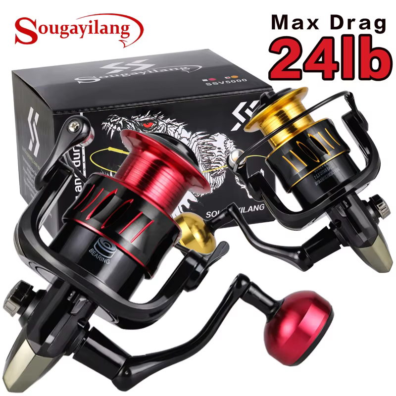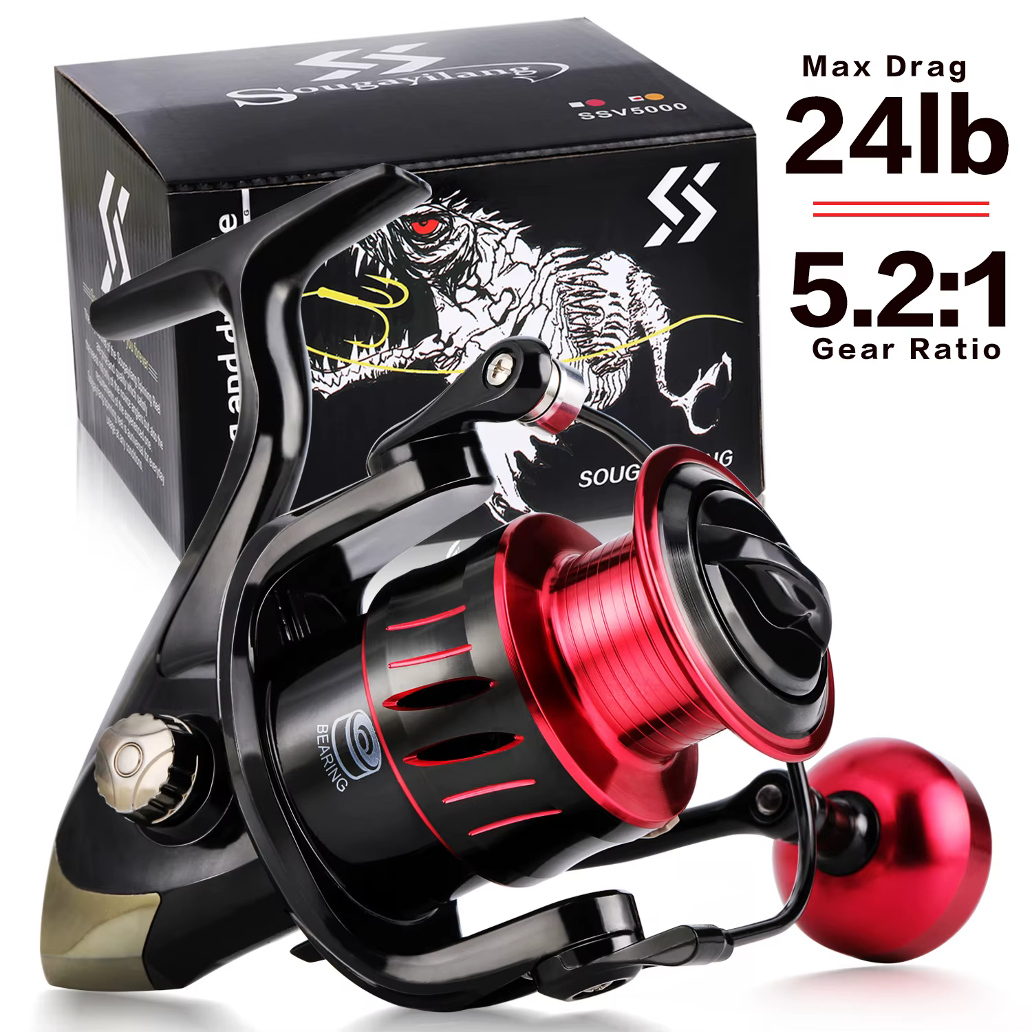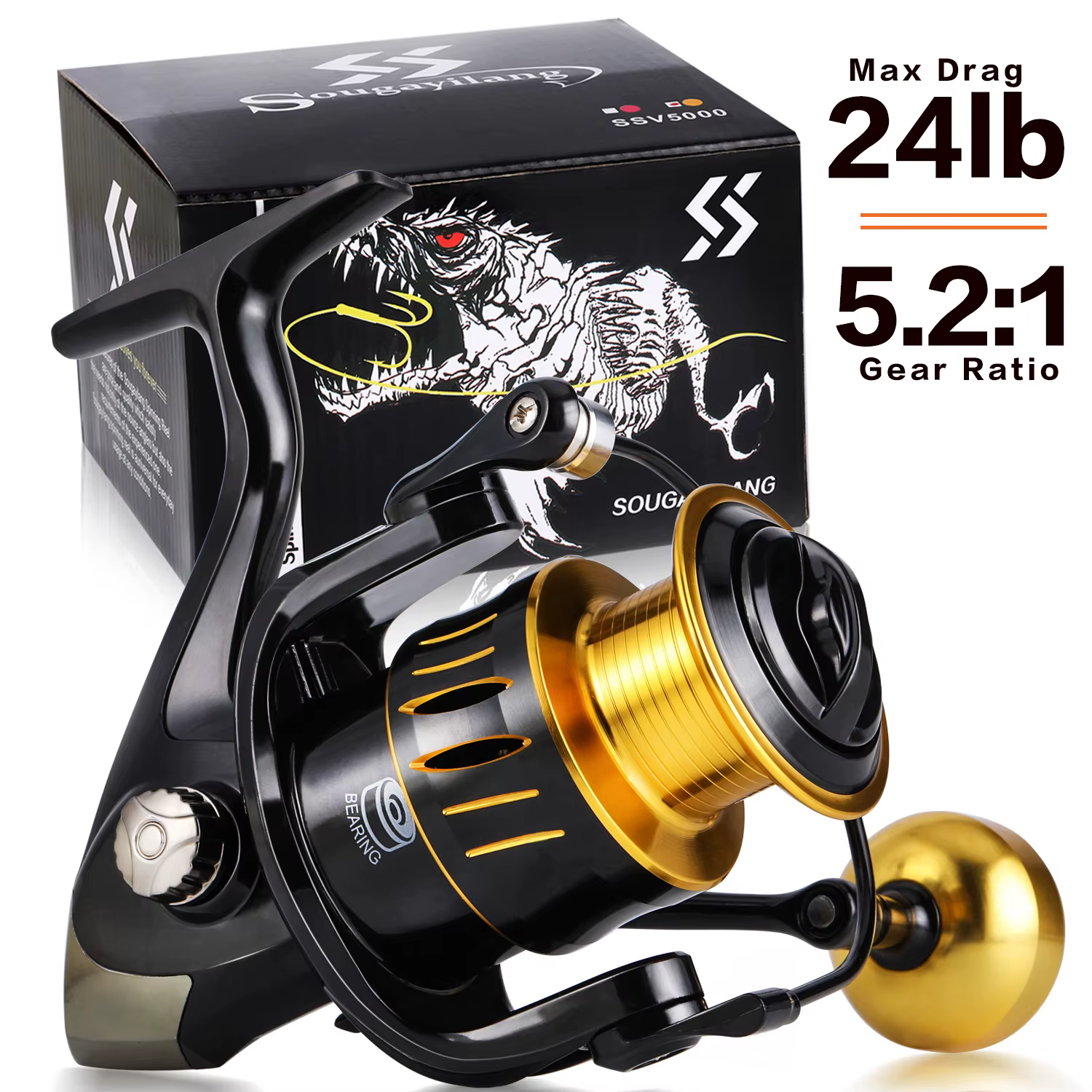Sougayilang Carretes de Pesca 5,2: 1 Carrete Giratorio de Alta Velocidad Molinete Serie 1000-5000 Bobina 24LB 10,8 KG Arrastre Máximo Todo para Pesca