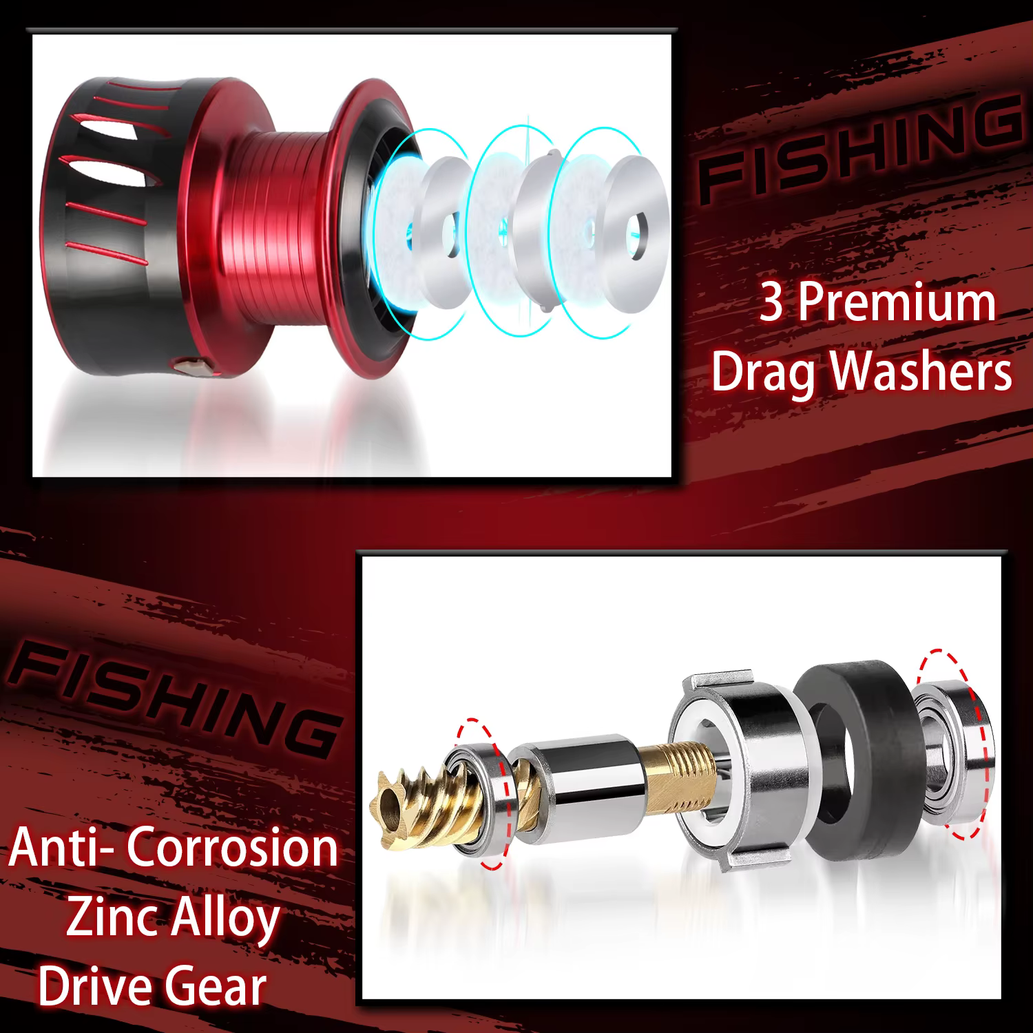 1. Sistema de embrague unidireccional, fácil de atrapar peces grandes, peso de hasta 24 libras.