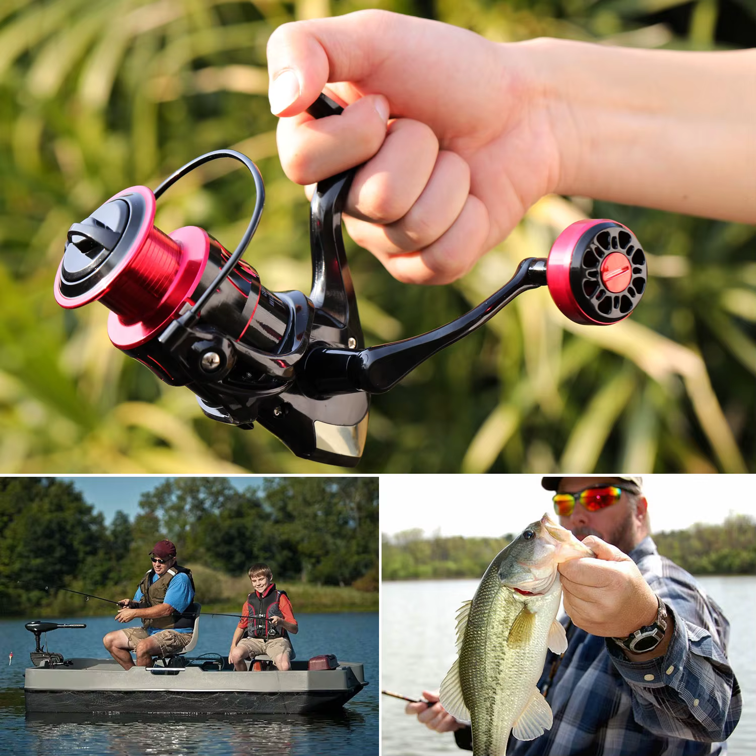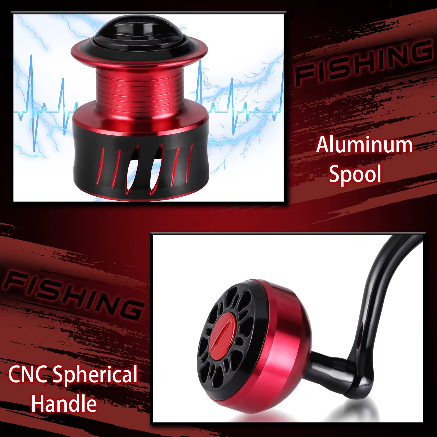 2. El carrete está hecho de plástico moldeado de alta resistencia, equipo de pesca ultraligero, ideal para pescar durante mucho tiempo.