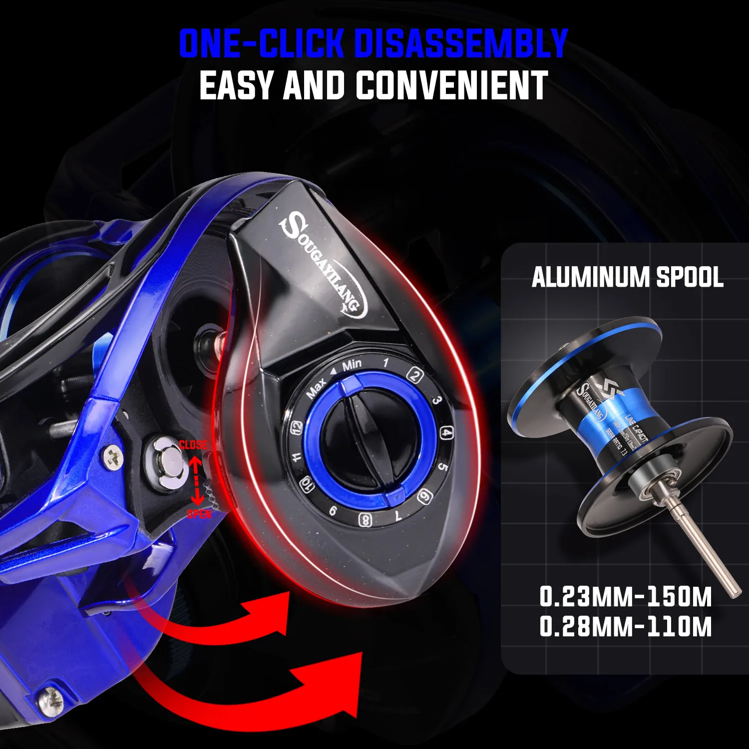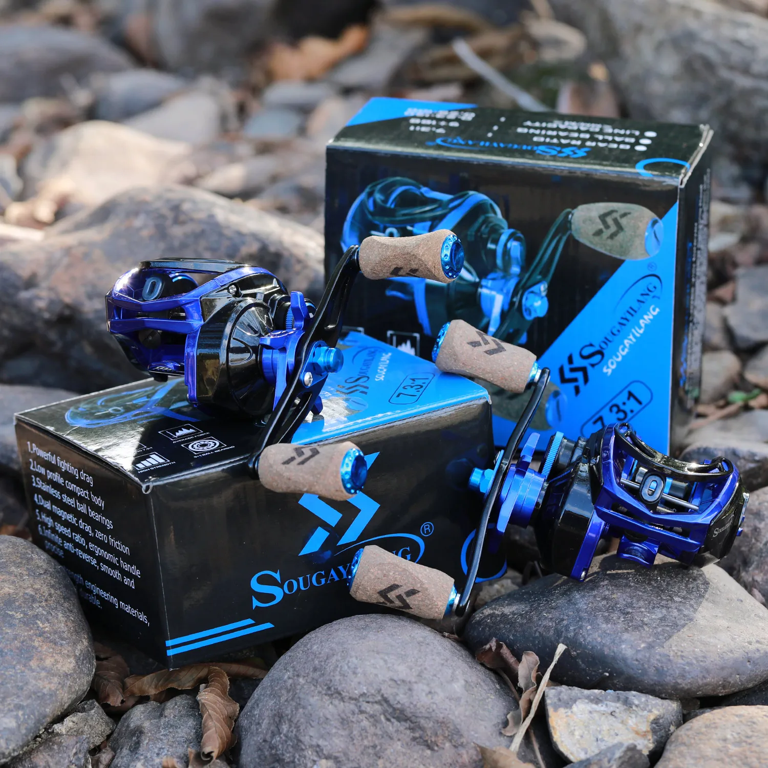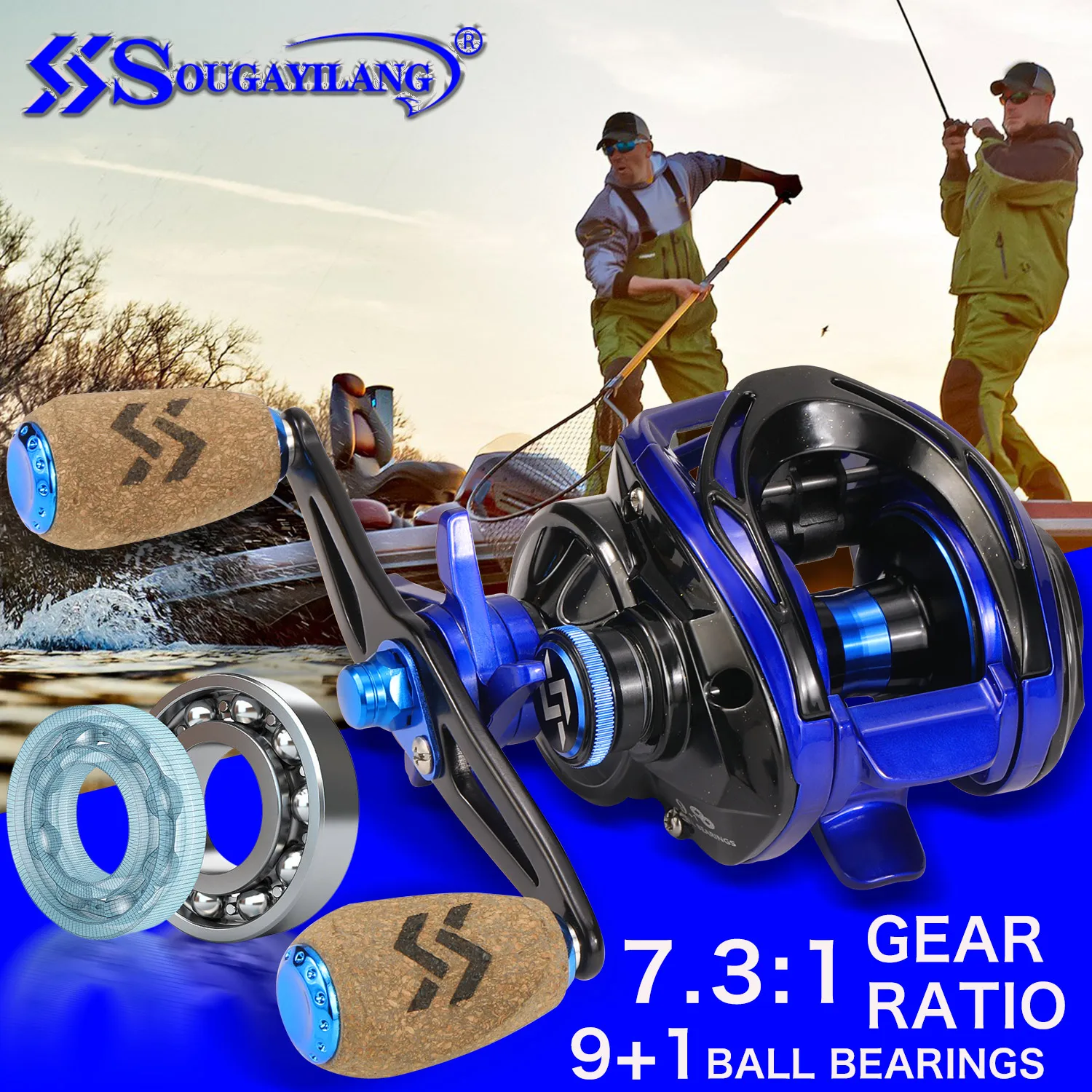 Carretes de pesca Sougayilang 7,3: 1 relación de engranaje de alta velocidad carrete de Baitcasting arrastre máximo de 9Kg con sistema de freno magnético carretes Baitcaster