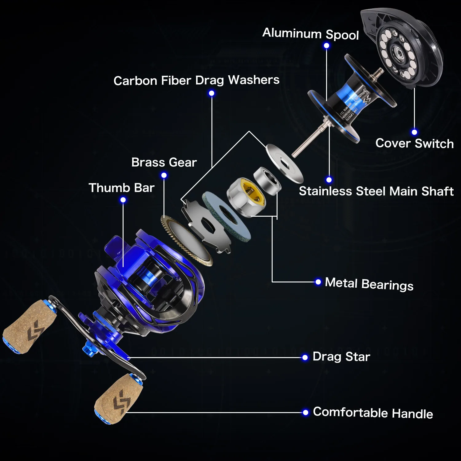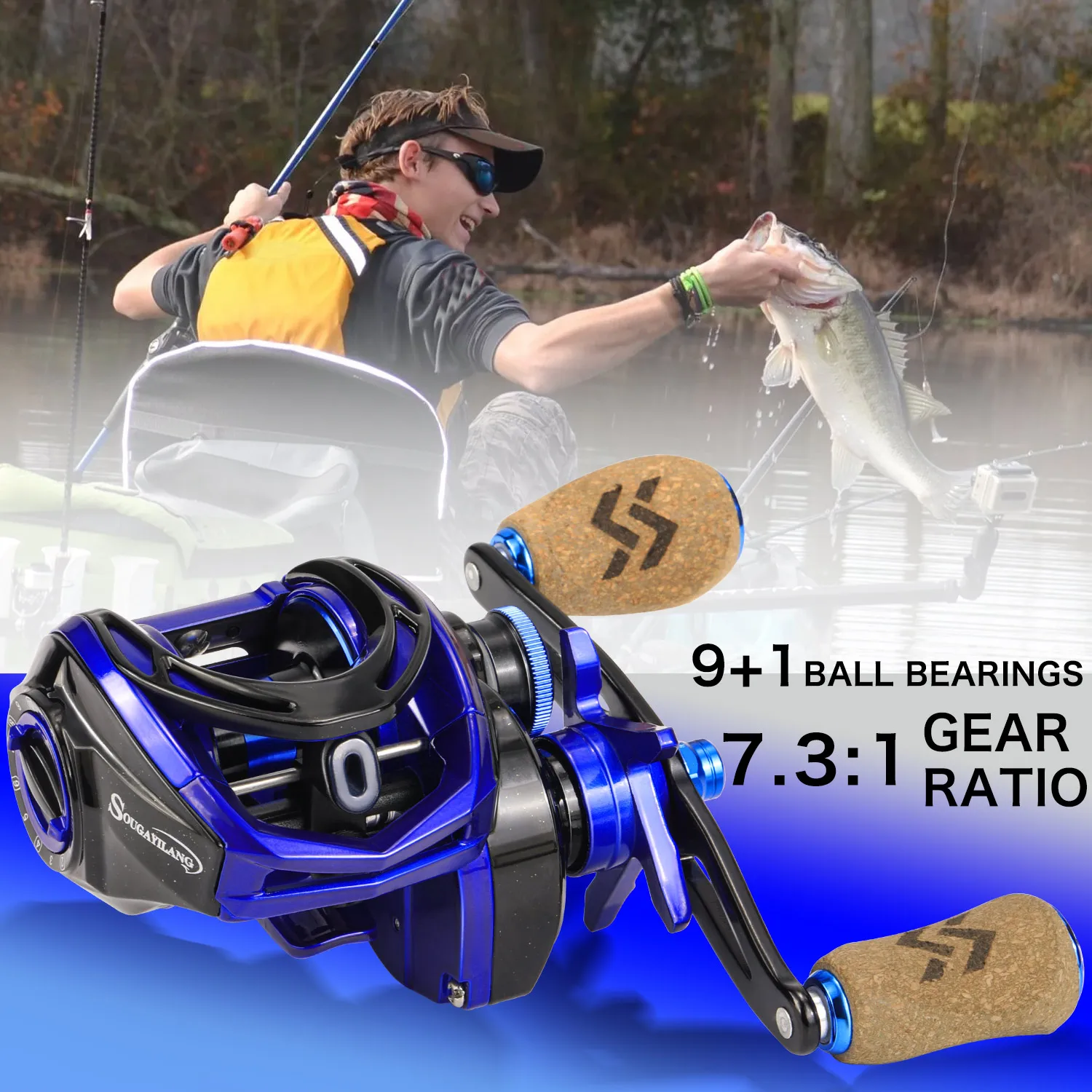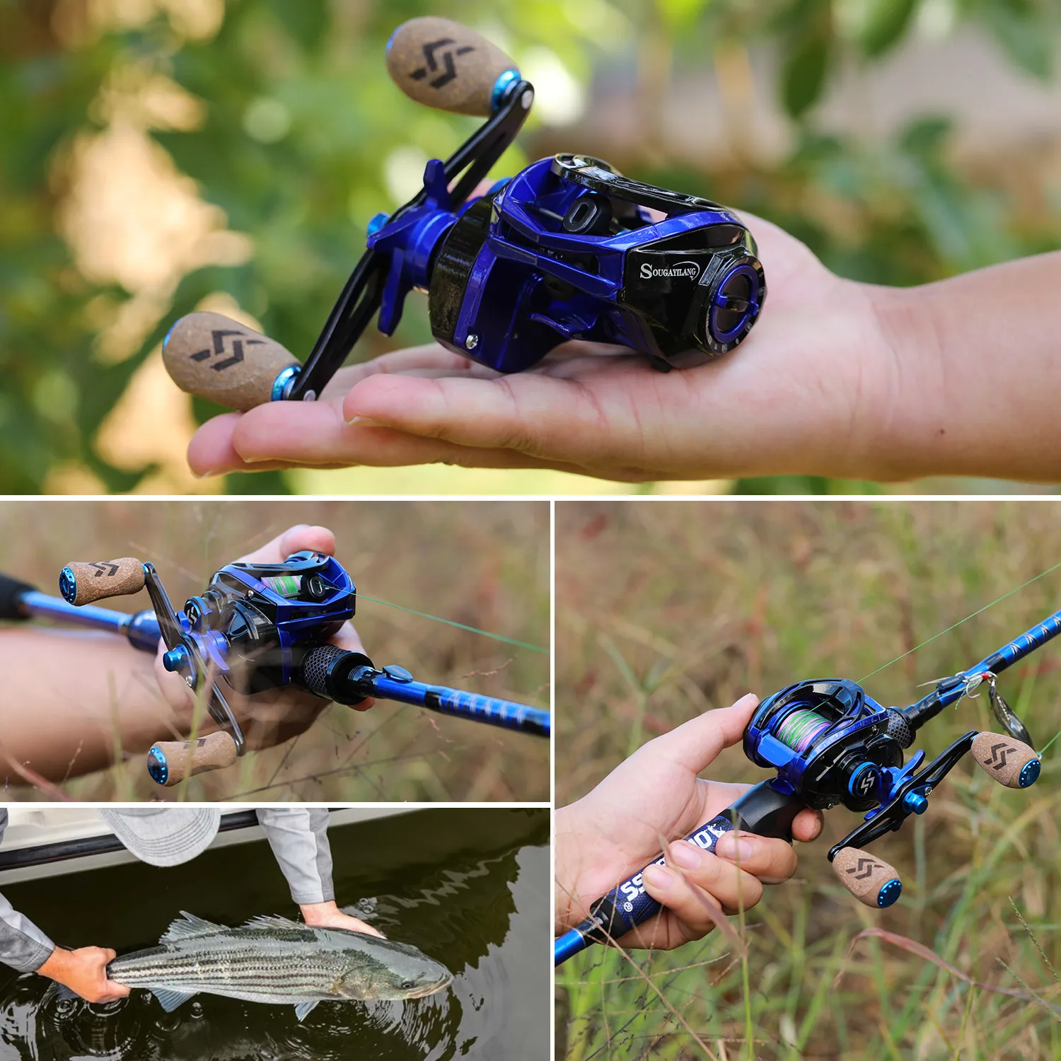 Carretes de pesca Sougayilang 7,3: 1 relación de engranaje de alta velocidad carrete de Baitcasting arrastre máximo de 9Kg con sistema de freno magnético carretes Baitcaster