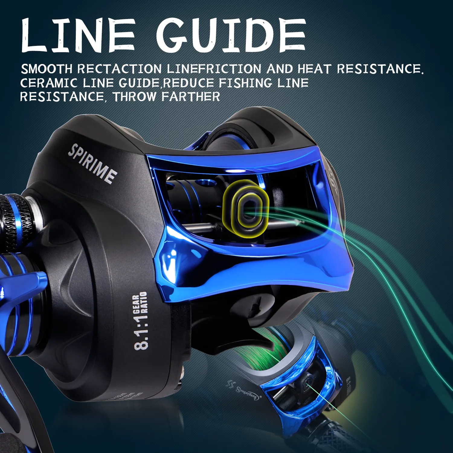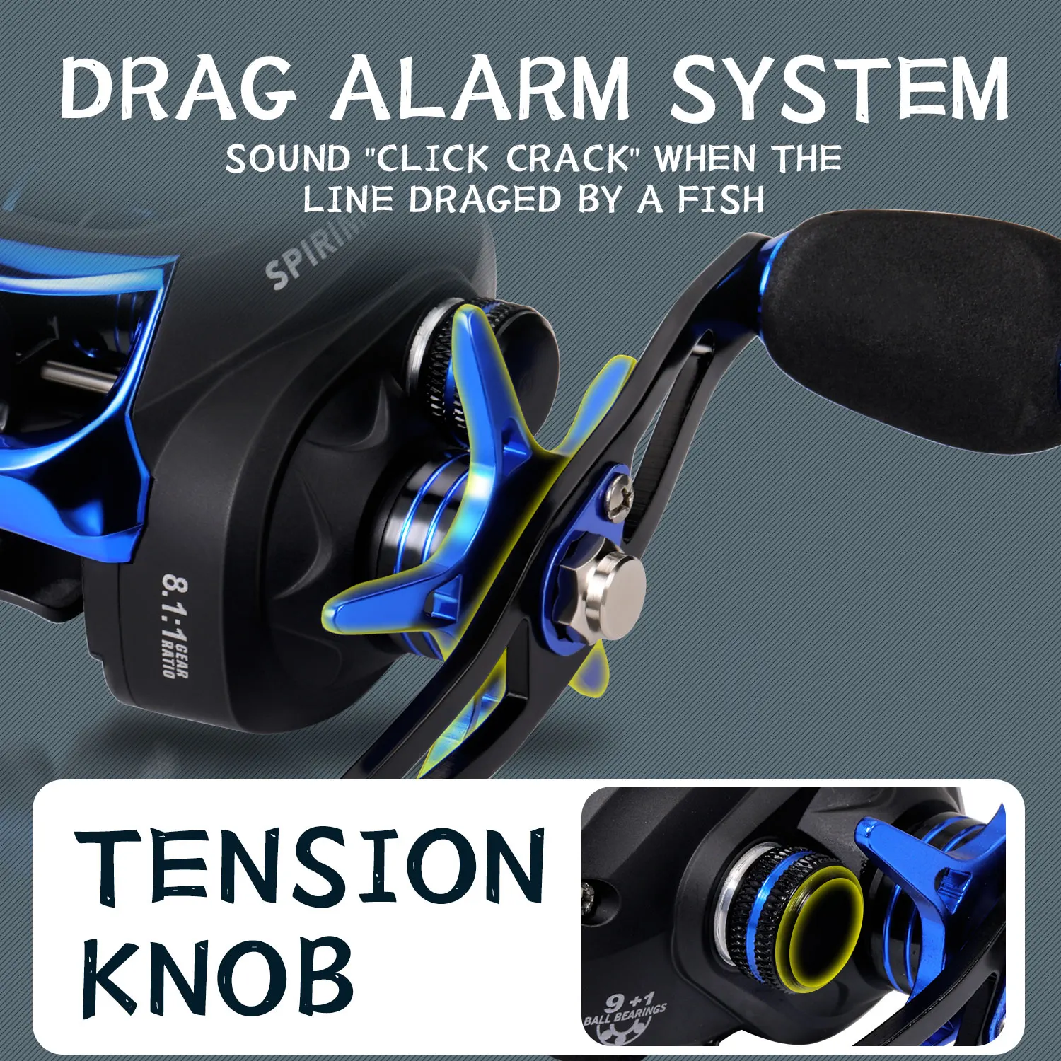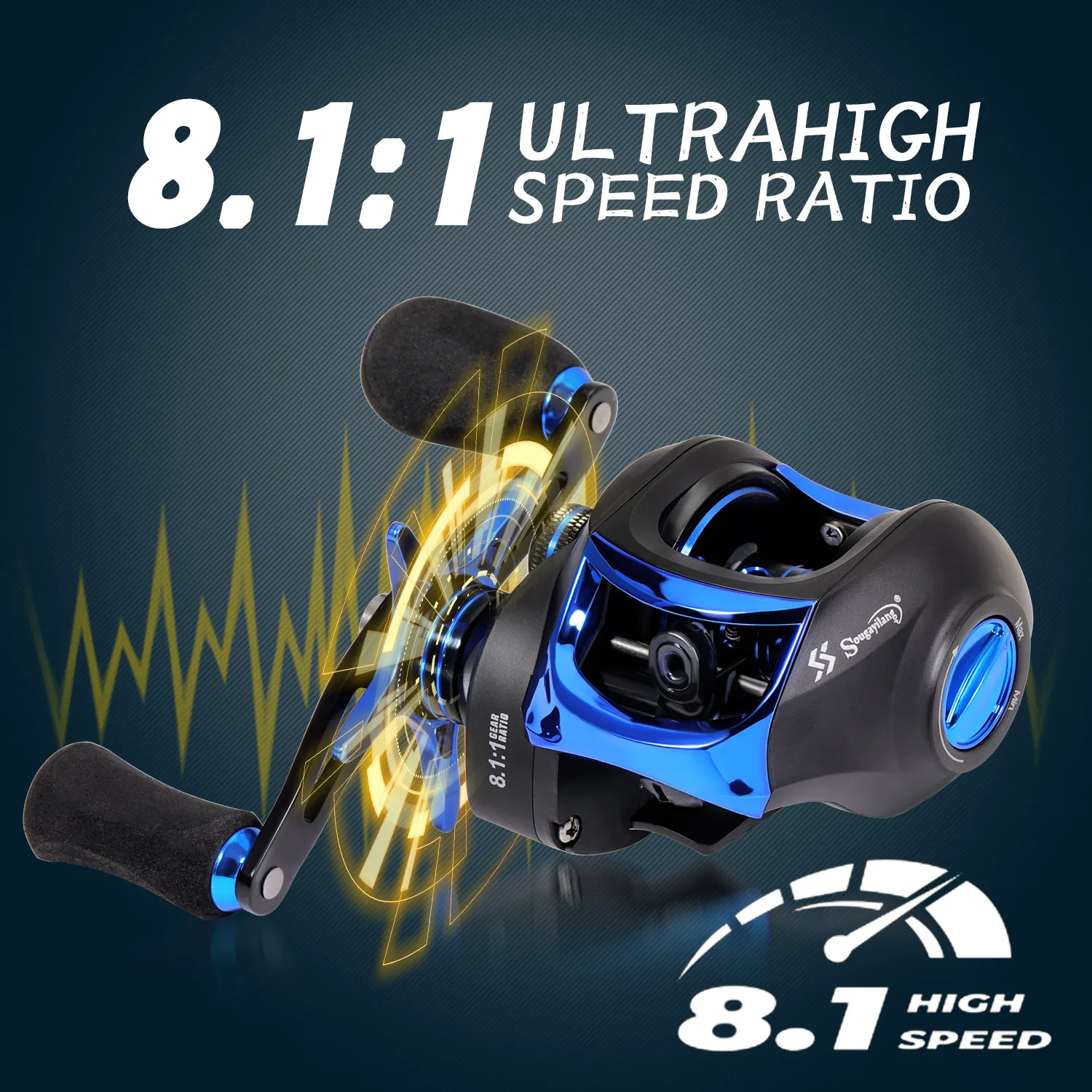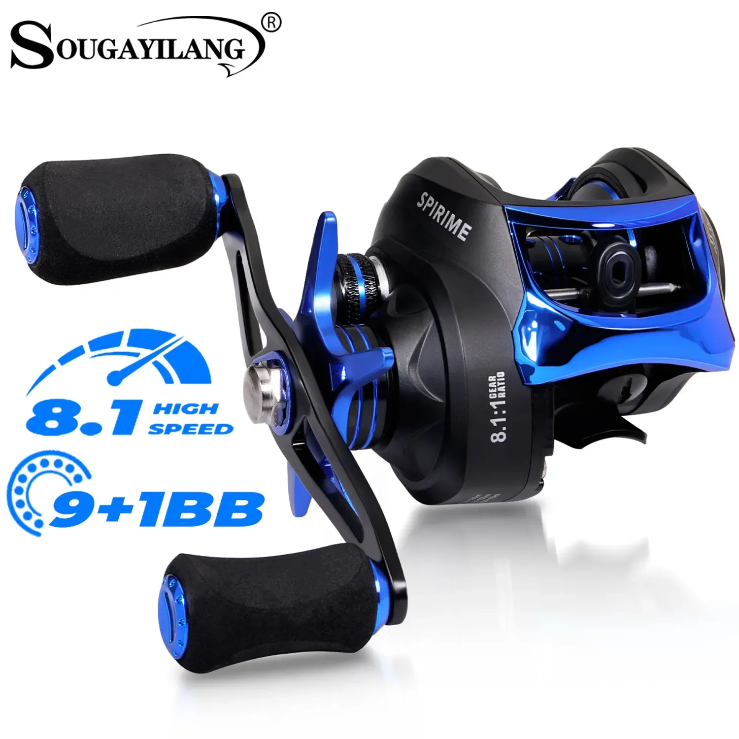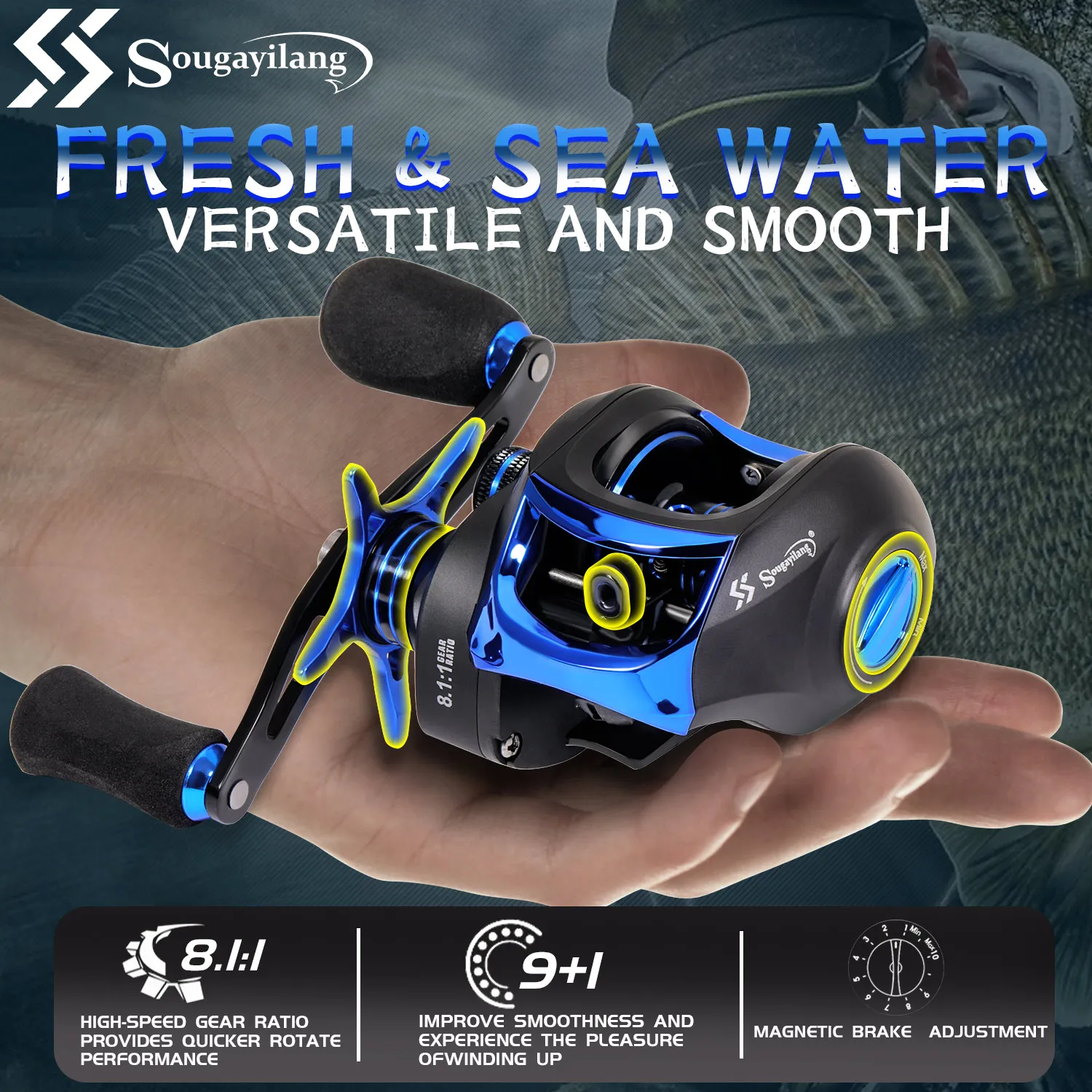 Carretes de Pesca Sougayilang 8,1: 1 relación de engranaje de alta velocidad 9 + 1BB carrete de Baitcasting con sistema de frenado magnético arrastre máximo 9,5Kg Pesca