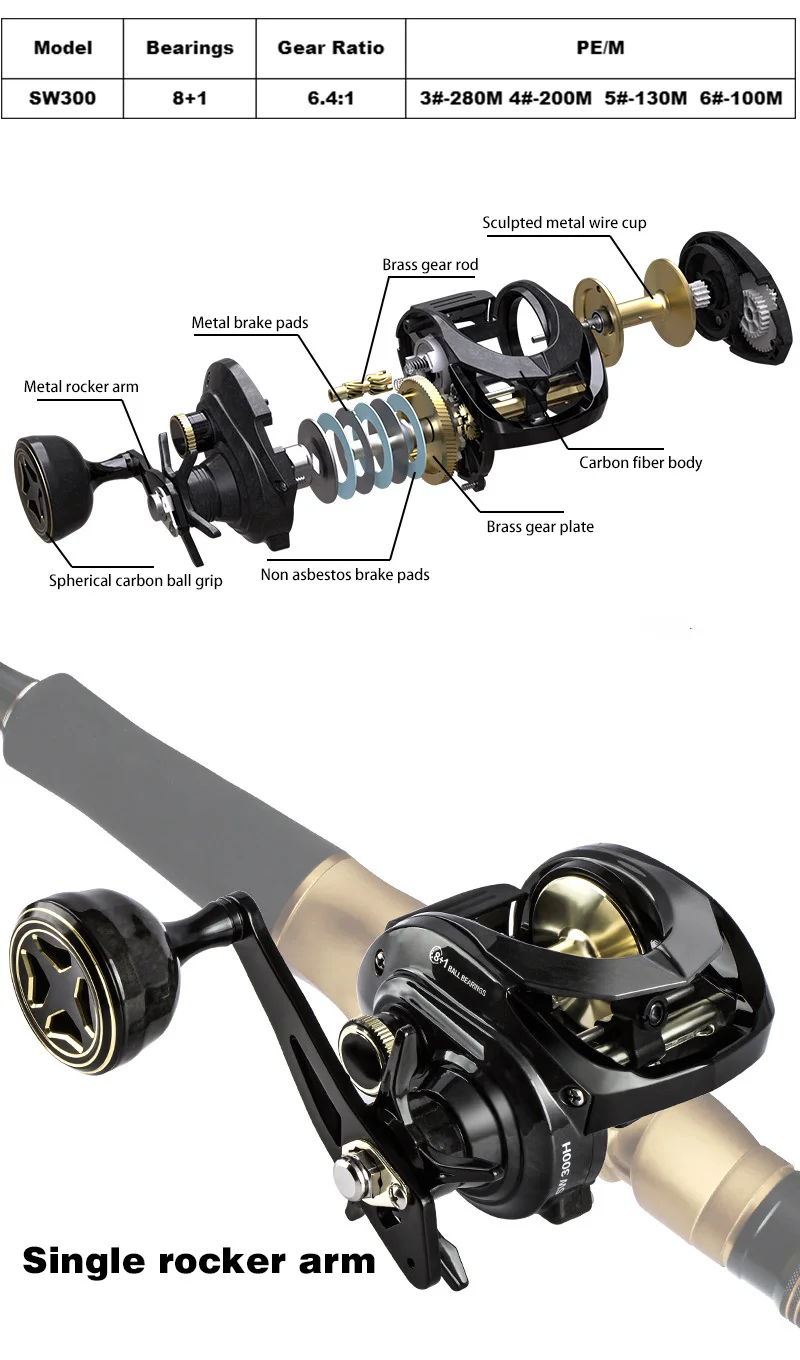 Carretes de pesca TAKEDO con cuerpo de fibra de carbono, carretes de pesca Baitcaster con arrastre máximo de 15KG, carretes de pesca de agua dulce y salada