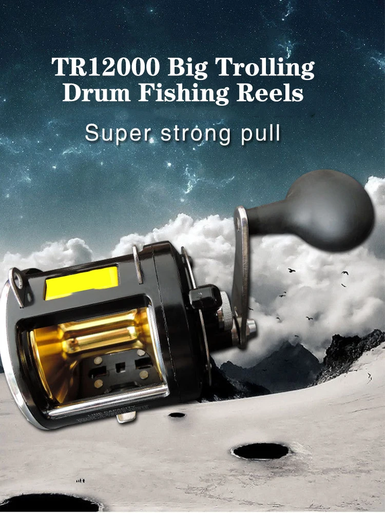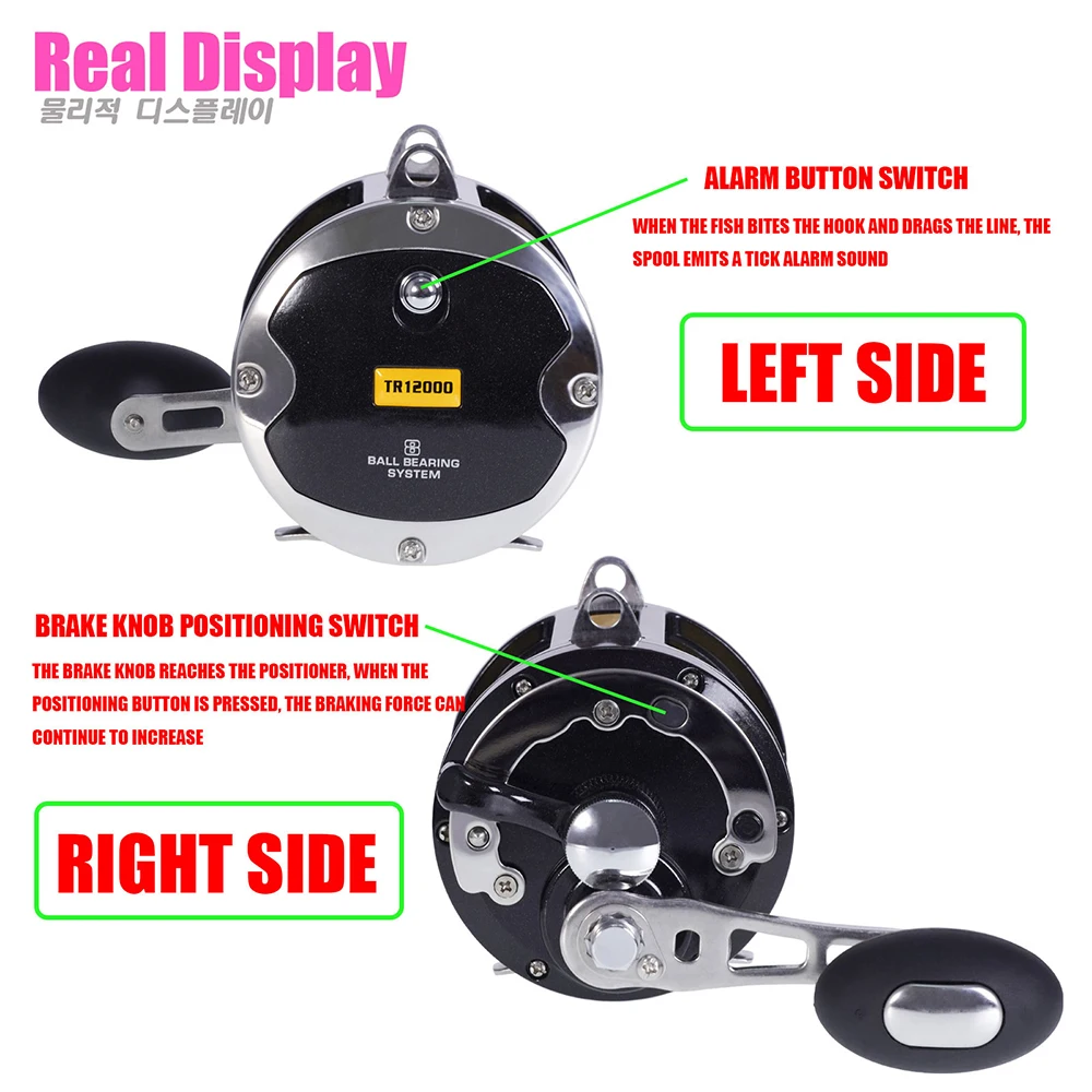 Carretes de pesca de tambor de arrastre grande TR12000 3,4: 1 Relación de engranaje 8 + 1BB cuerpo de aleación de aluminio arrastre máximo 30kg carrete de pesca de mar