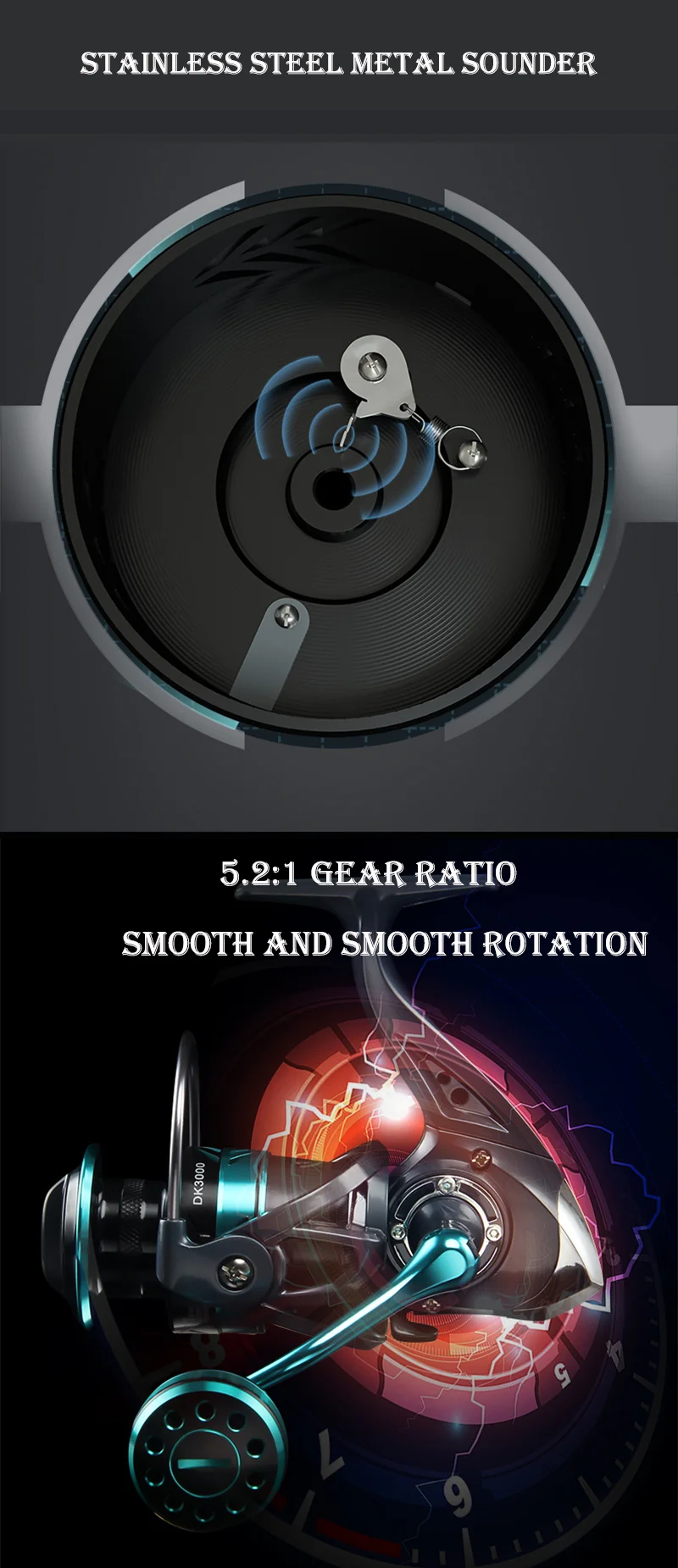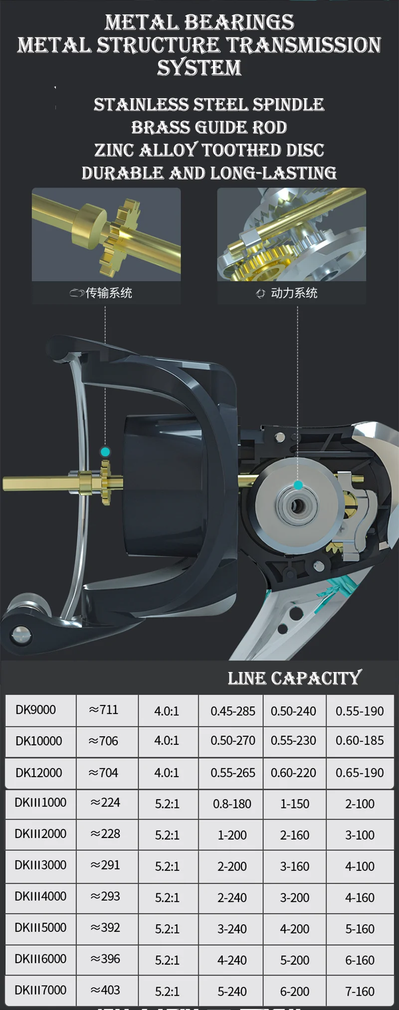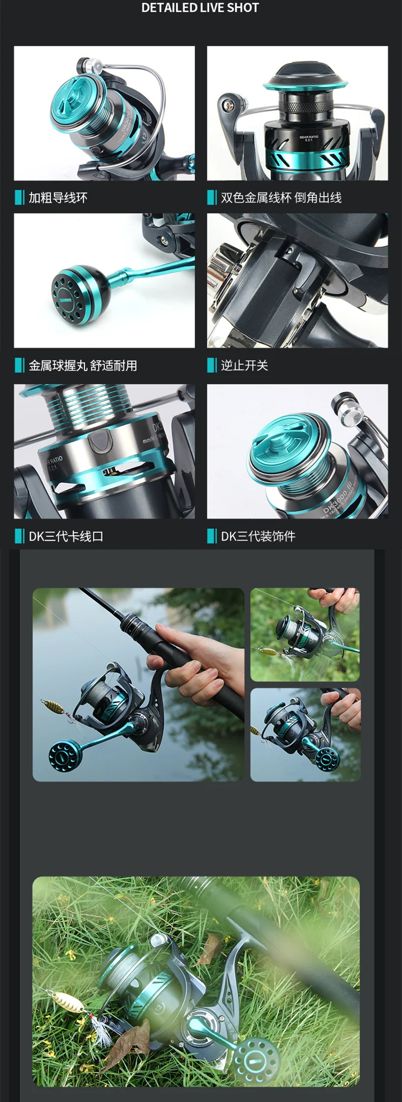 9. La versión de pesca en el mar tiene una copa de línea de gran capacidad y una gran perilla de freno, lo que garantiza una pesca estable.