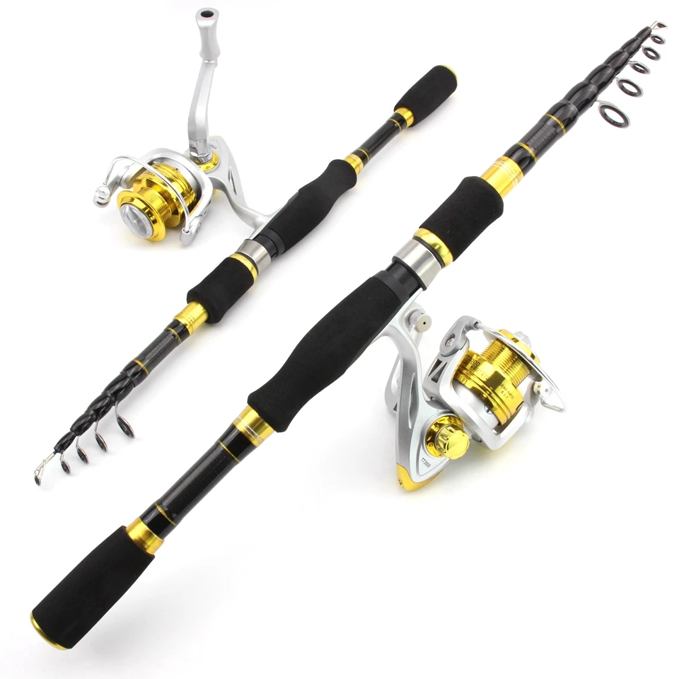 Carretes y caña de pescar de carbono, bolsa portátil, juego de anzuelos de línea, carrete, 1,8 m y 2,1 m, molinete