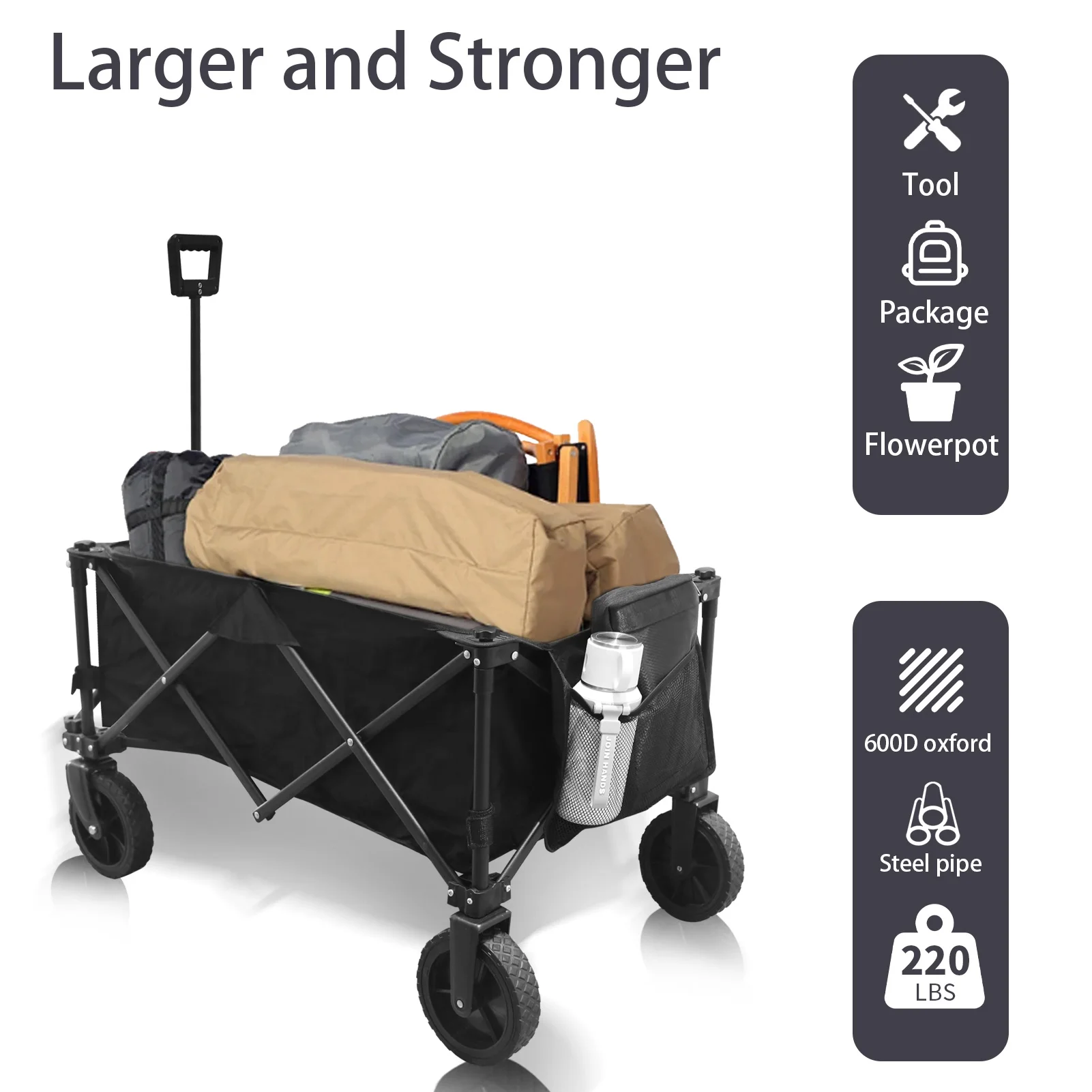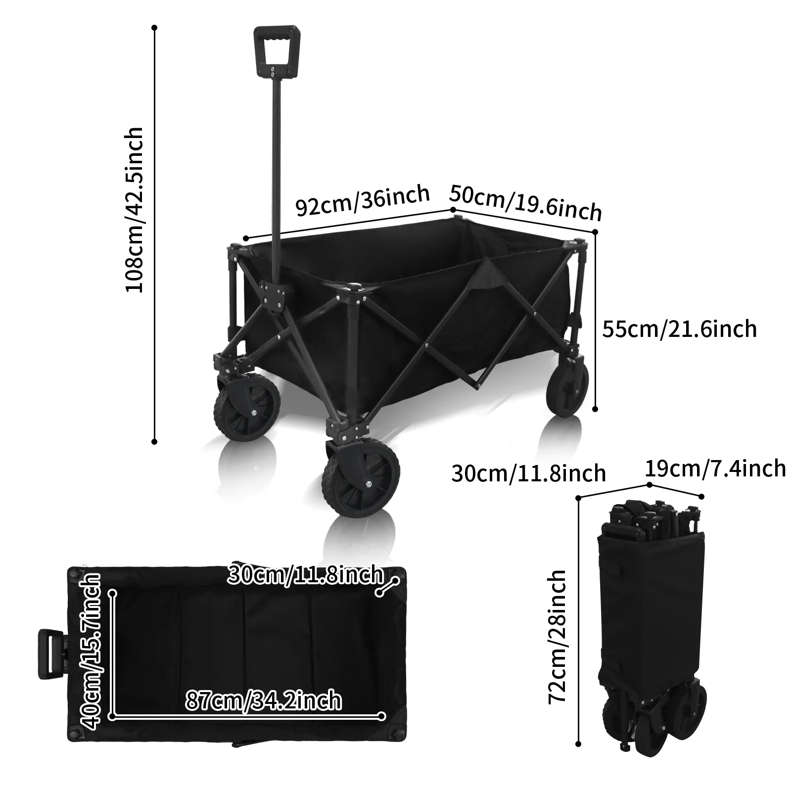 Bien hecho: sistema de dirección robusto, tela Oxford 600D duradera y material de primera calidad, garantizan una larga vida útil del carrito de camping resistente.El asa ajustable garantiza que este carro se mueva suavemente en cualquier plataforma y se ajuste a la necesidad de diferentes personas.