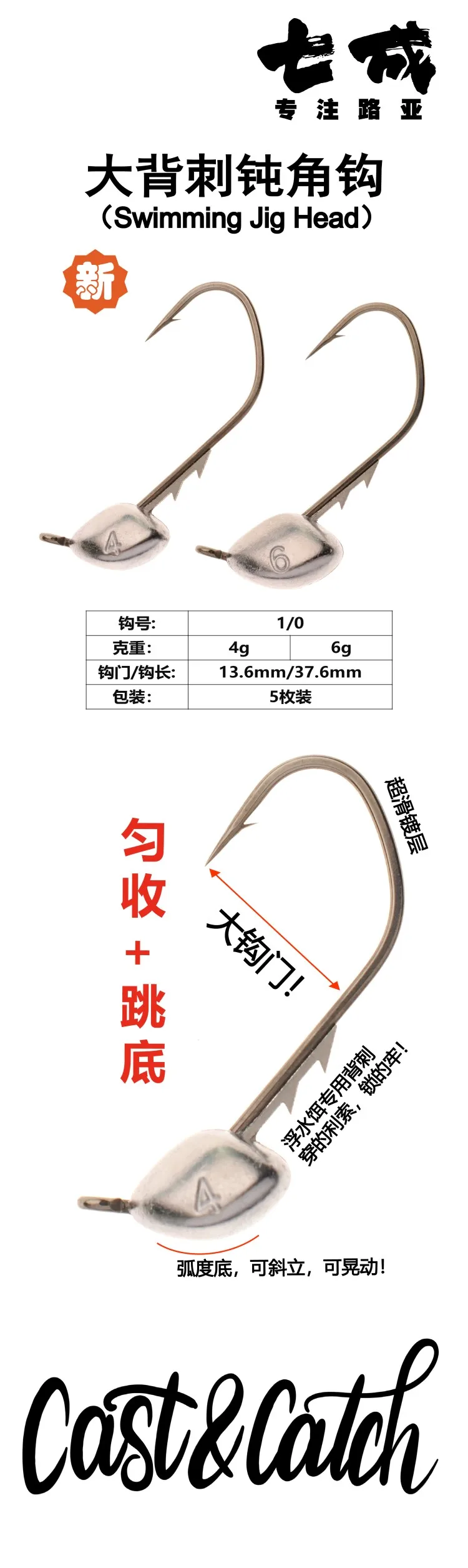 Cast & Catch anzuelos de aparejo Ned gratis de 5 piezas, señuelo de pesca, anzuelo de plomo, gusano suave, cebo suave, anzuelo anticolgante para Columpio de lubina