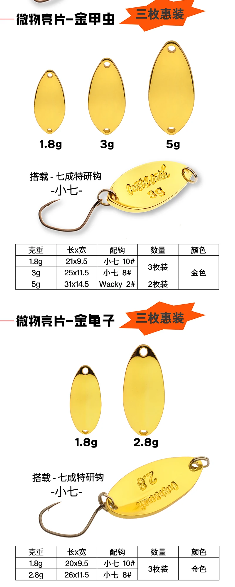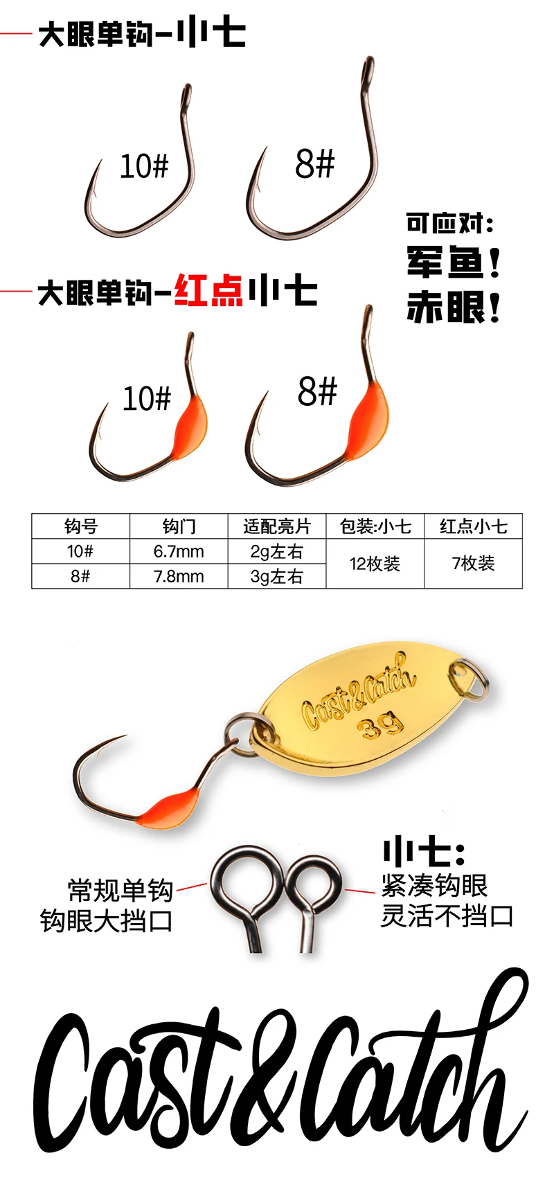 Cast & Catch señuelo de ojos grandes, gancho único, pequeño, siete escarabajos dorados, Micro purpurina, cebo falso Stream