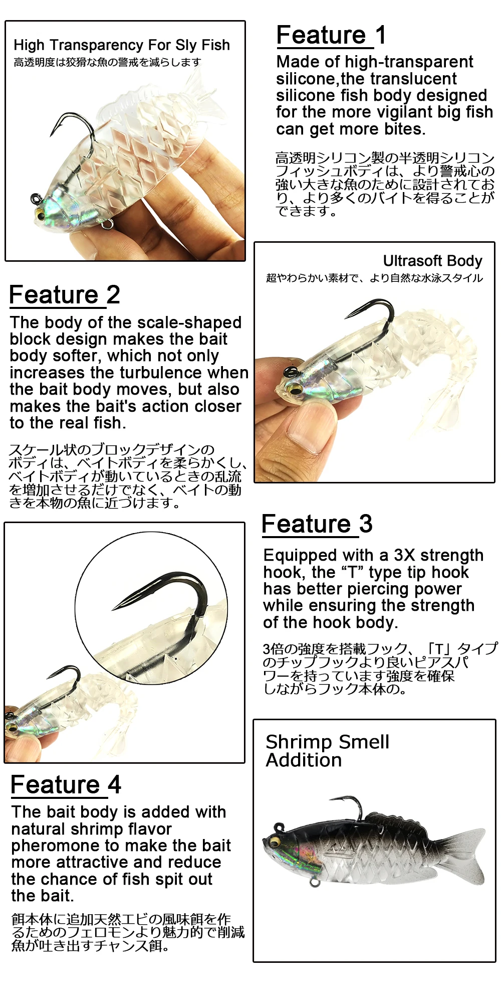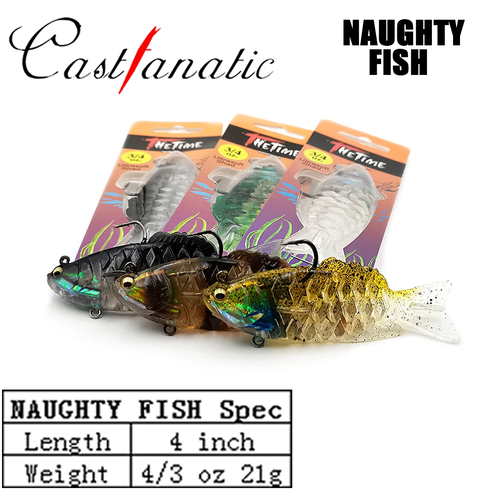 Castfanatc-señuelo suave Swimbait de cola de paleta de silicona multisección, 21g, con cabeza de plantilla, señuelo de goma travieso para aparejos de pesca de mar de Lucio