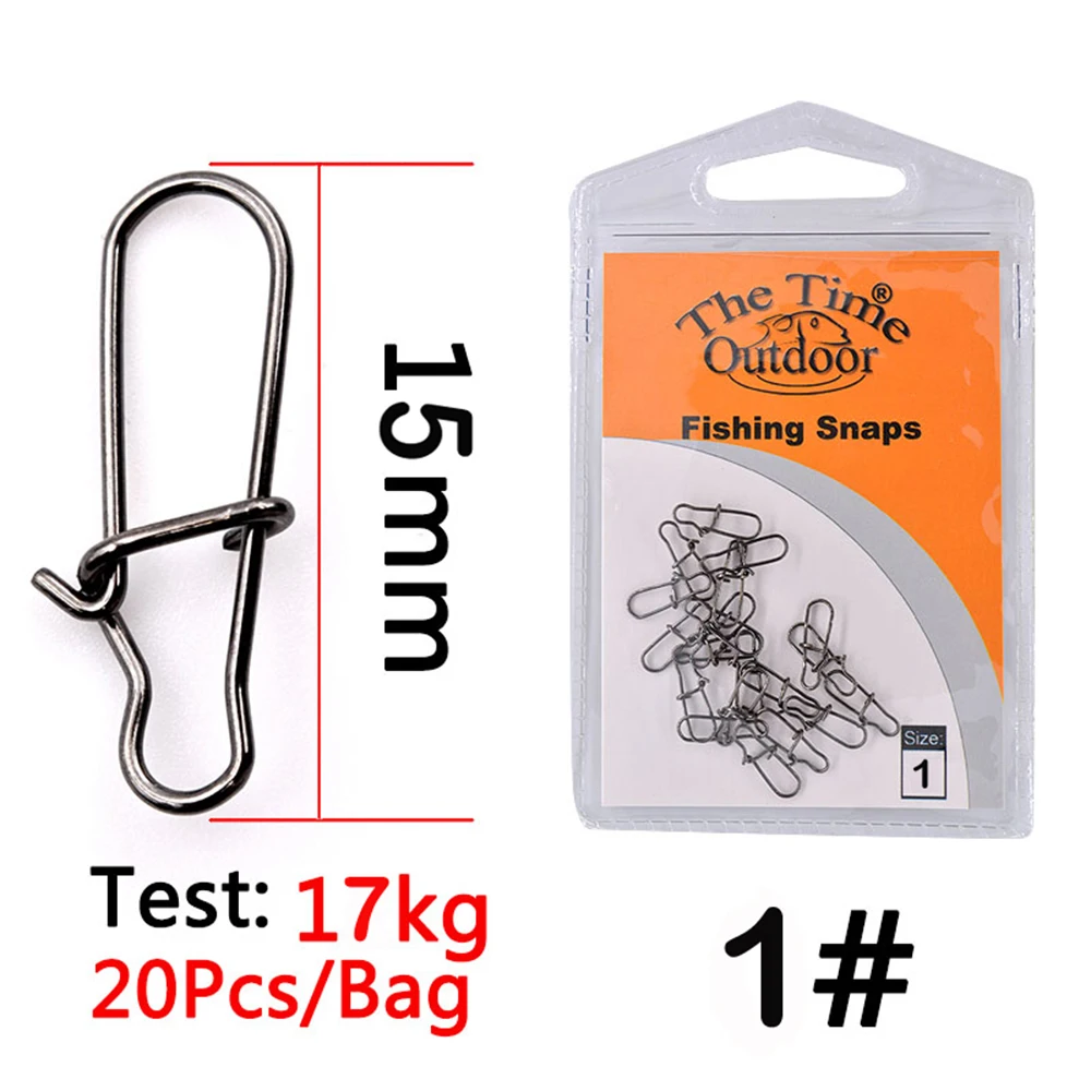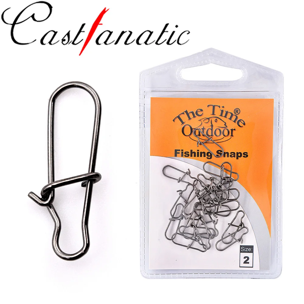 Castfanatic 20 unids/lote broches de seguridad conector de pesca de acero inoxidable bloqueo de Clip rápido Snap giratorio anillos sólidos Snap aparejos de pesca