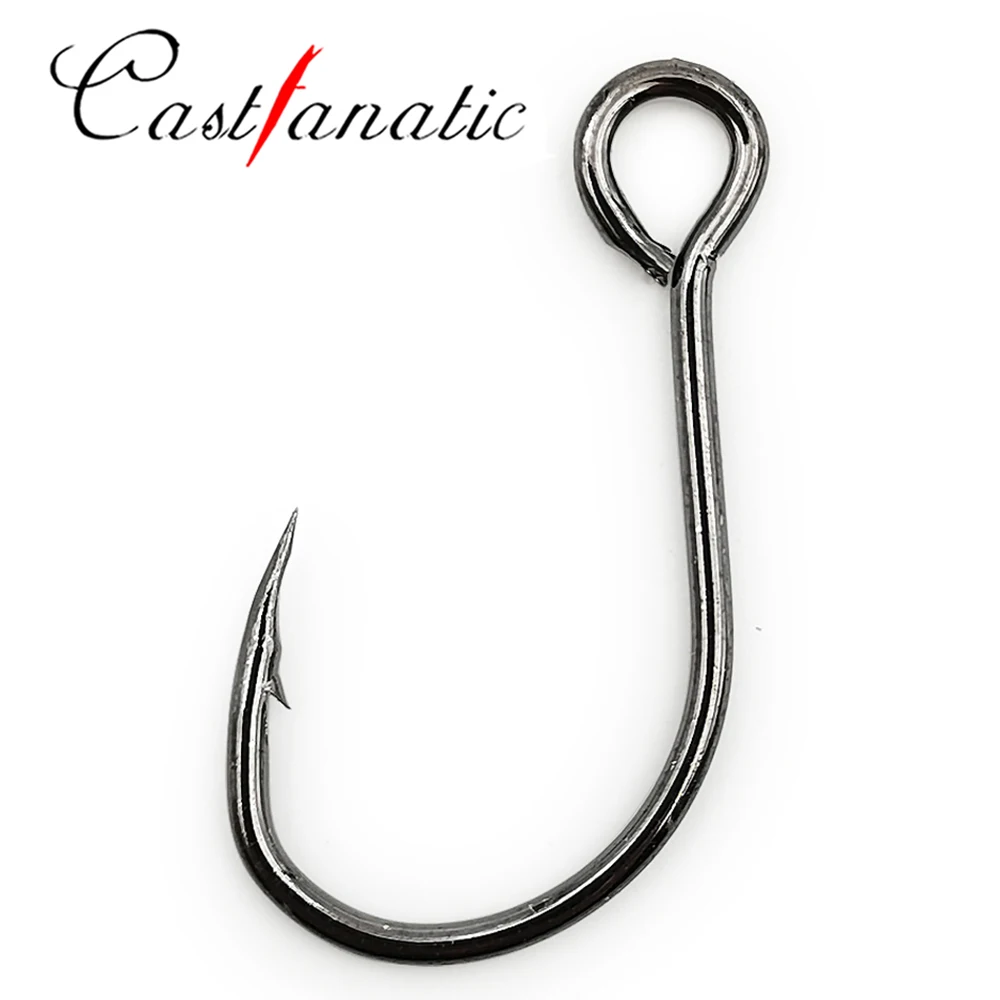 Castfanatic #8-#2/0 φ 1,36mm-0,7mm alambre de acero grueso Big Eye Barbsd anzuelos individuales más fuertes aparejos de pesca de carpa para Minnow Crankbait Wobblers
