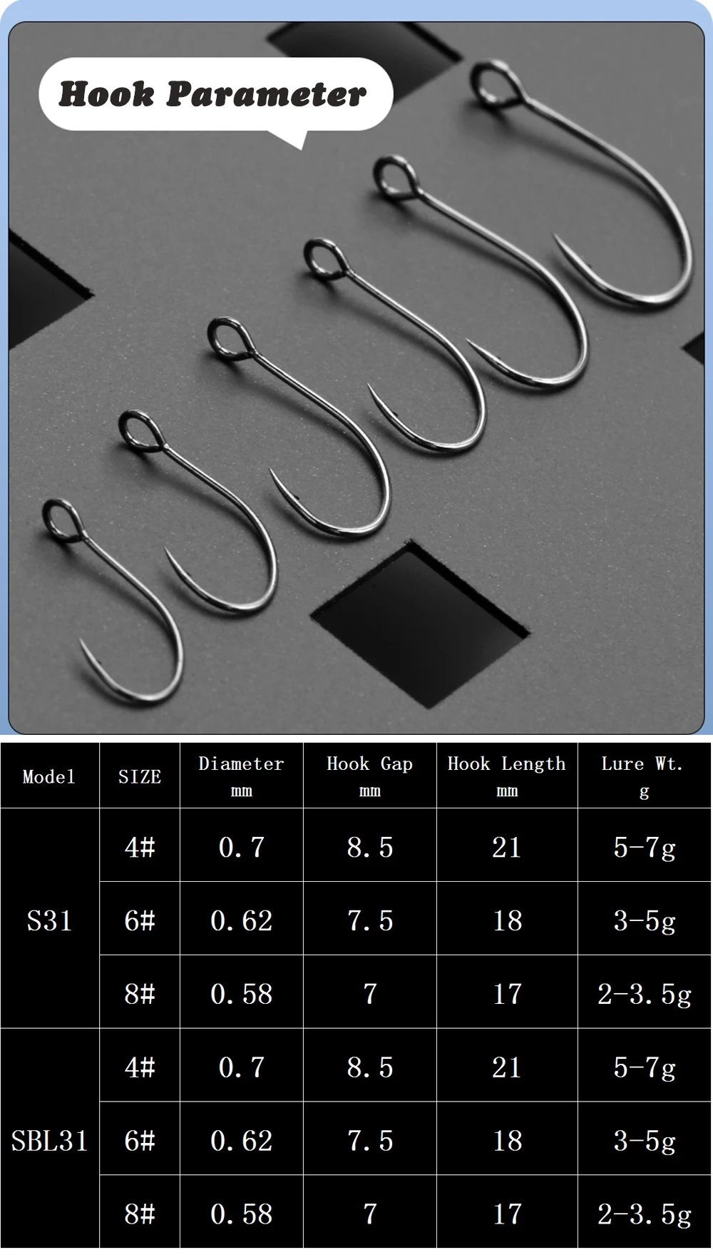 El anillo de gancho de ojo grande es más conveniente de instalar y también reduce el impacto del anzuelo en el señuelo.