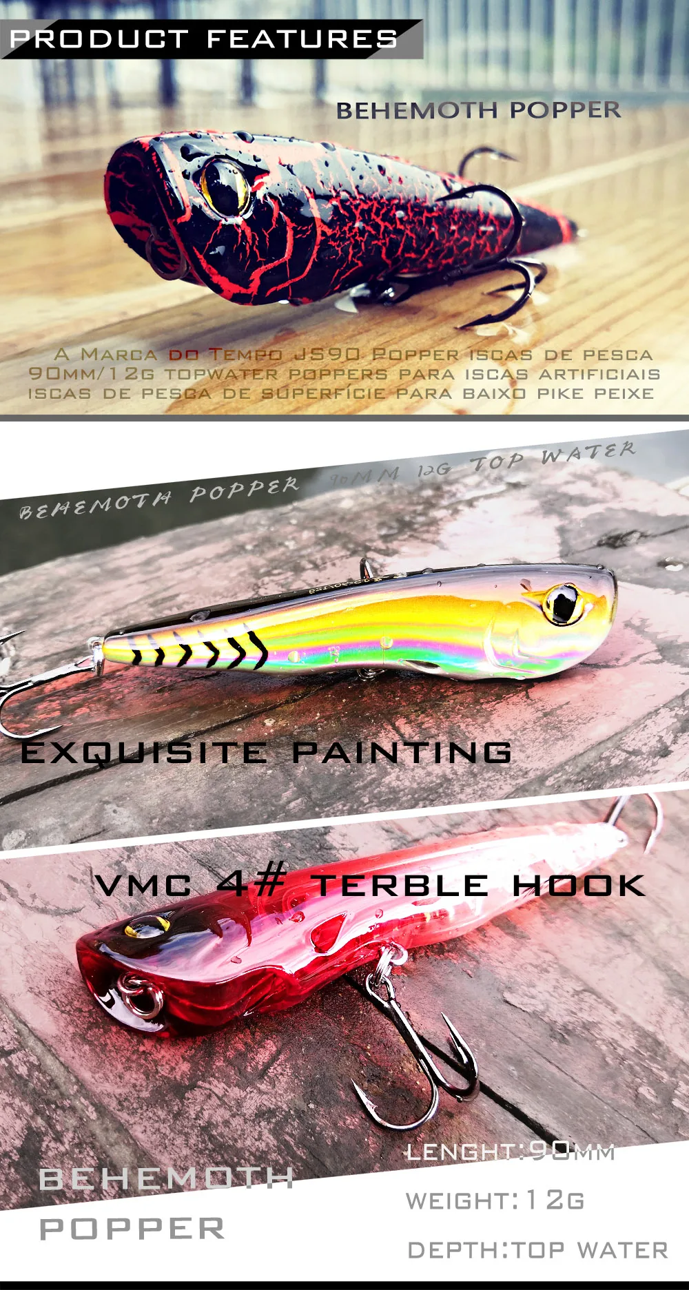 Castfanatic JS90 12g Topwater Popper señuelos superficie flotante cebo duro Wobblers Crankbait para trucha VMC anzuelo aparejos de Pesca