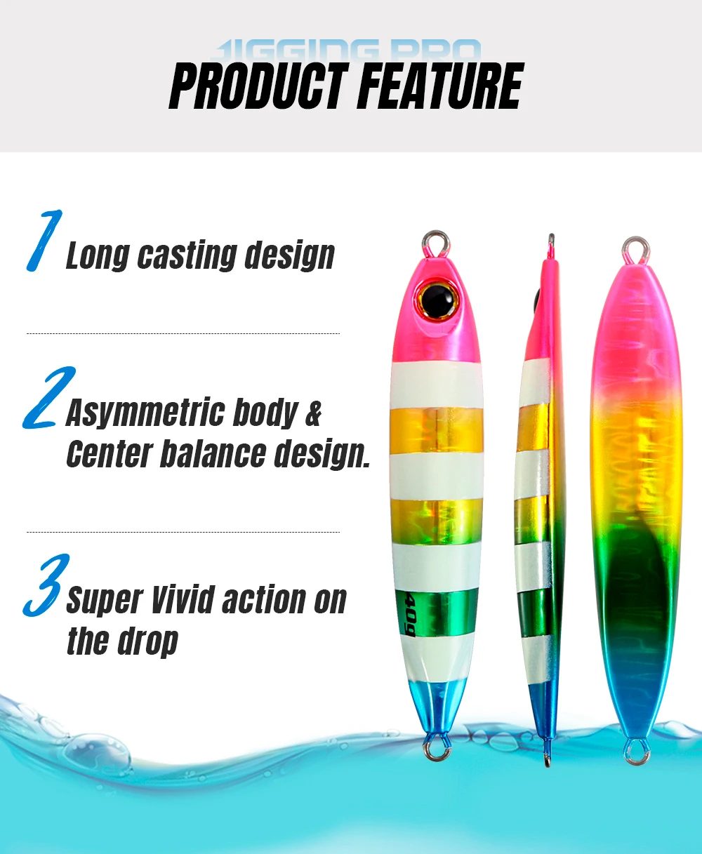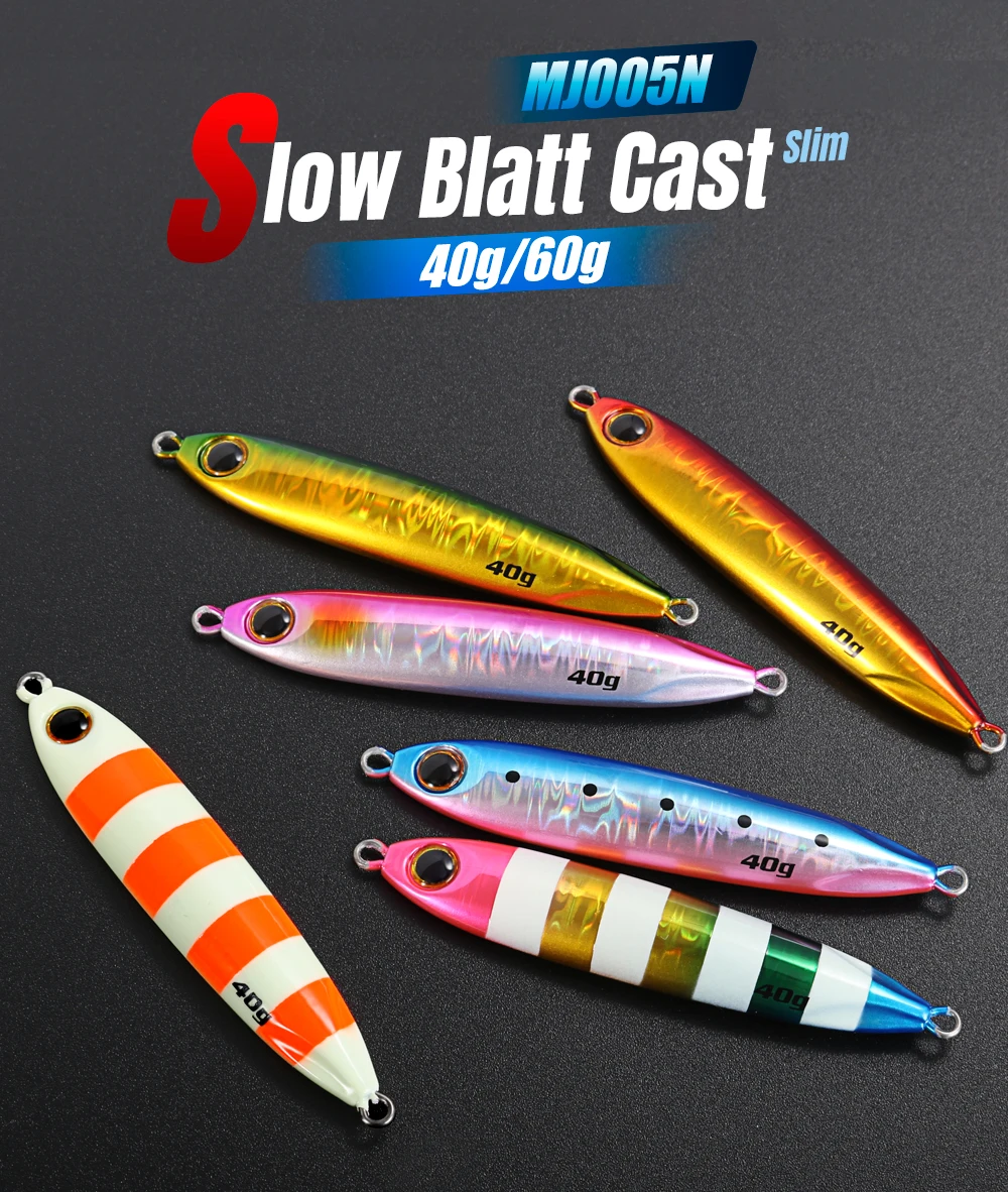 CASTFUN Plantilla de Metal delgada fundida con Blatt lento, 40g, 60g, señuelo de Jigging Shore, plantilla de tono lento, cebo Artificial para lubina costera