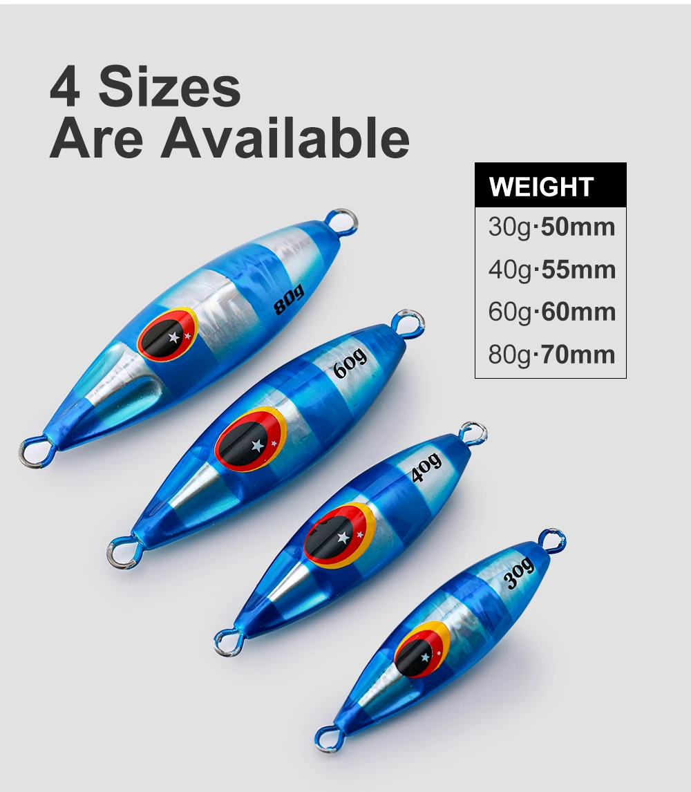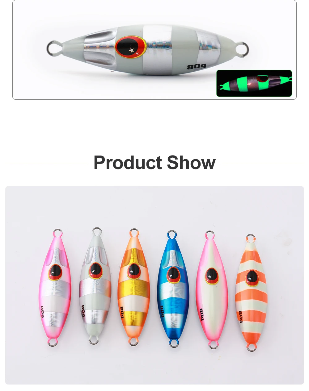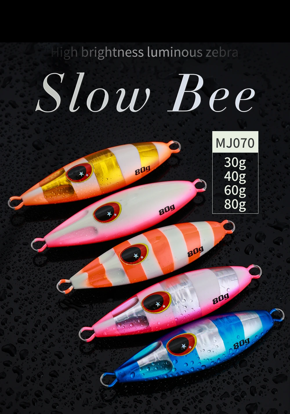 CASTFUN Metal Jig 30g 40g 60g 80g caída lenta abeja Jigging señuelo resplandor agua salada pesca señuelo Shore Casting Jigging cebo