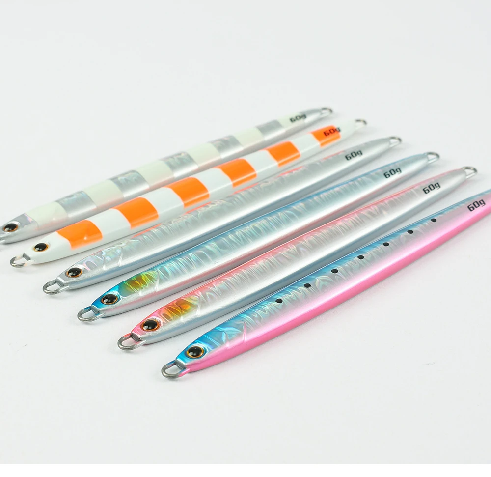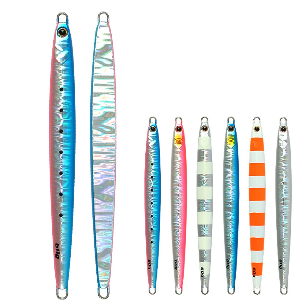 CASTFUN-señuelo de pesca con plantilla de Metal largo, cuchara de Jigging de fundición lenta, 60g, 80g, cebo de pesca de Metal Artificial
