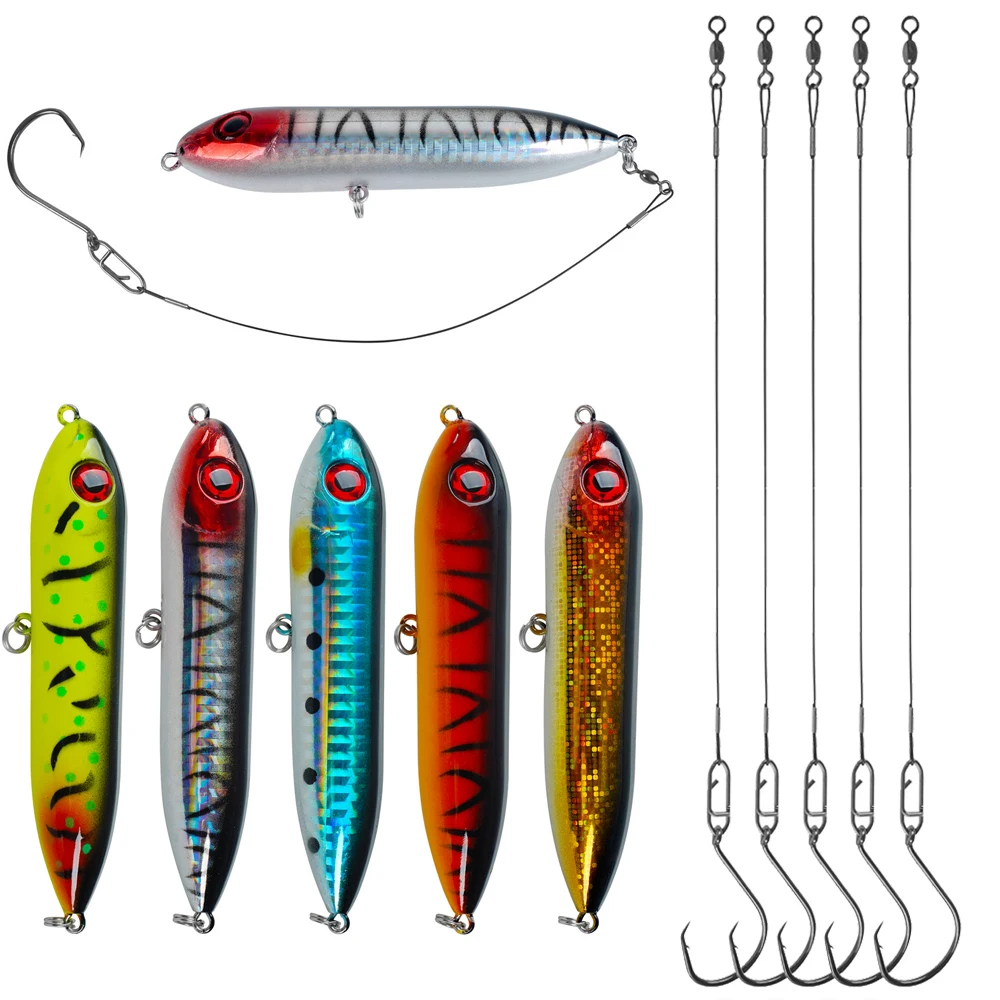 2. La plataforma de señuelo de lápiz flotante se puede utilizar en variedad de aplicaciones en tierra y en alta mar. Ideal para el aparejo de pesca de surf para lubina rayada, atún, tiburón y Dorado, etc., aparejos de pesca con señuelos de caza mayor.