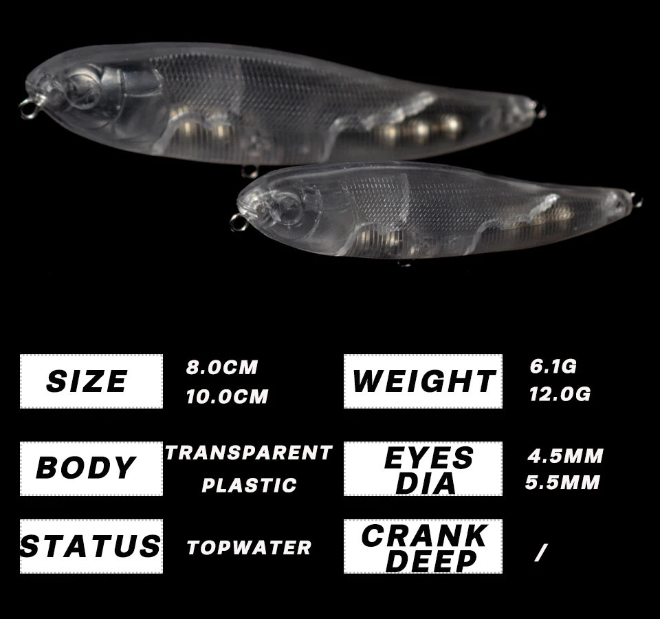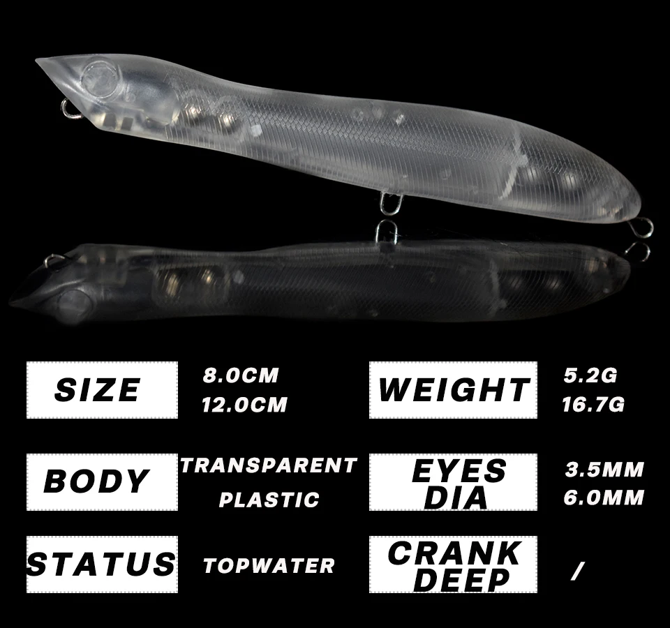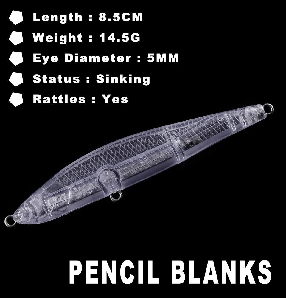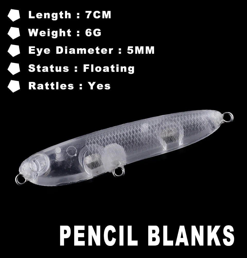 CCLTBA 5 unids/lote calidad sin pintar Señuelos de Pesca lápiz Popper cebos duros espacios en blanco para DIY señuelo Artificial Wobbler aparejos de pesca