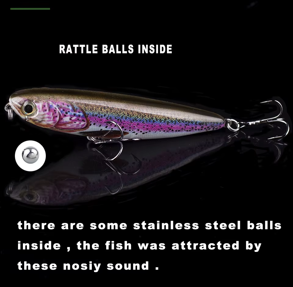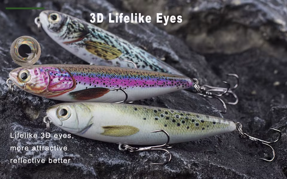 Este cebo duro es uno de los mejores accesorios en su caja de aparejos. Tiene apariencia y color realistas y puede crear acciones de natación realistas en el agua para provocar que el depredador muerda. Si usted es un entusiasta de la pesca, tome este señuelo de pesca y aumentará sus capturas y le traerá mucha diversión.