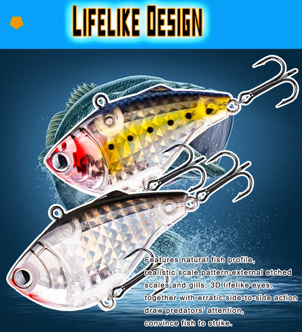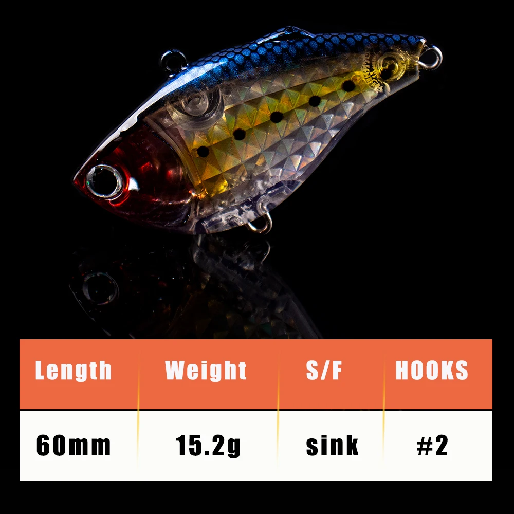 CCLTBA cebo VIB de alta calidad 6cm 15,2g lámina interior hecho a mano pintura trabajo Señuelos de pesca Wobble sin labios Crankbait vibración cebos duros