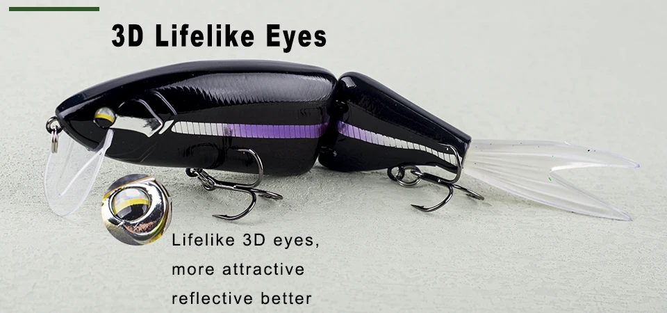 Este cebo duro es uno de los mejores accesorios en su caja de aparejos. Tiene apariencia y color realistas y puede crear acciones de natación realistas en el agua para provocar que el depredador muerda. Si usted es un entusiasta de la pesca, tome este señuelo de pesca y aumentará sus capturas y le traerá mucha diversión.