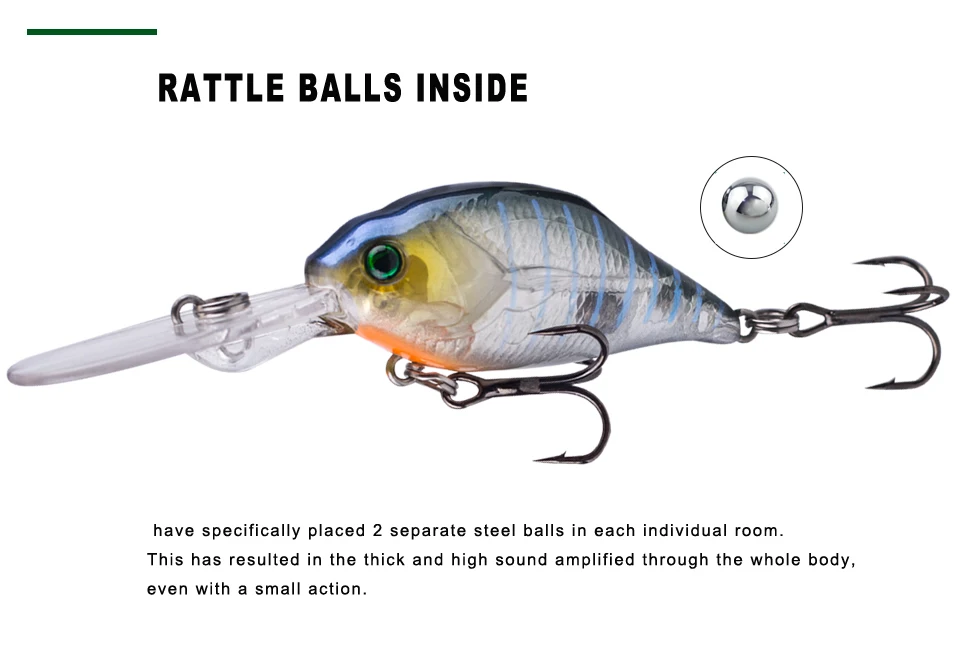 Este cebo duro es uno de los mejores accesorios en su caja de aparejos. Tiene apariencia y color realistas y puede crear acciones de natación realistas en el agua para provocar que el depredador muerda. Si usted es un entusiasta de la pesca, tome este señuelo de pesca y aumentará sus capturas y le traerá mucha diversión.