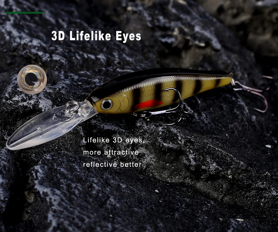 Este cebo duro es uno de los mejores accesorios en su caja de aparejos. Tiene apariencia y color realistas y puede crear acciones de natación realistas en el agua para provocar que el depredador muerda. Si usted es un entusiasta de la pesca, tome este señuelo de pesca y aumentará sus capturas y le traerá mucha diversión.