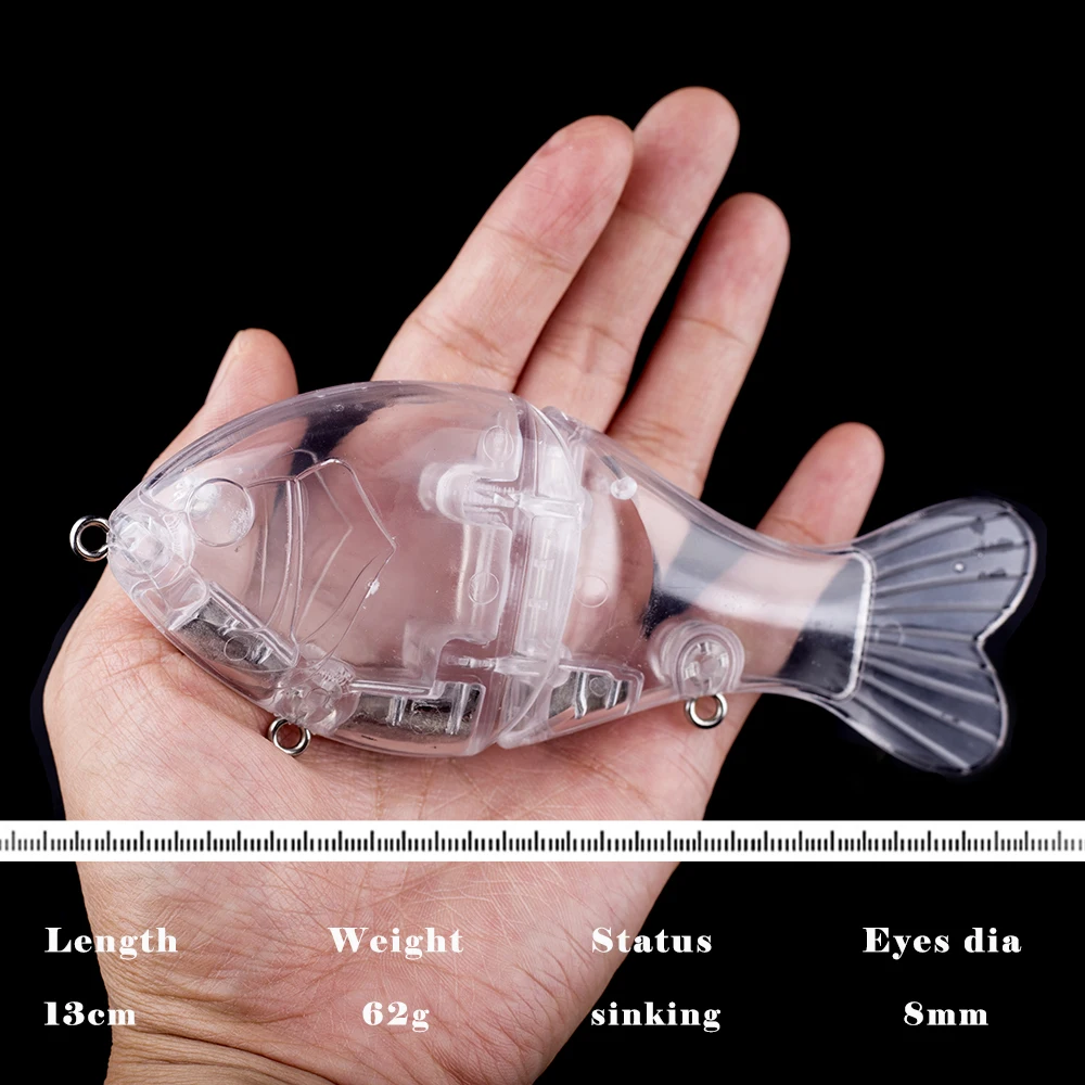 CCLTBA, novedad, 2 unids/lote, Swimbait articulado sin pintar, 13cm, 62G, señuelo duro para pesca, cuerpo transparente, Señuelos de Pesca DIY en blanco