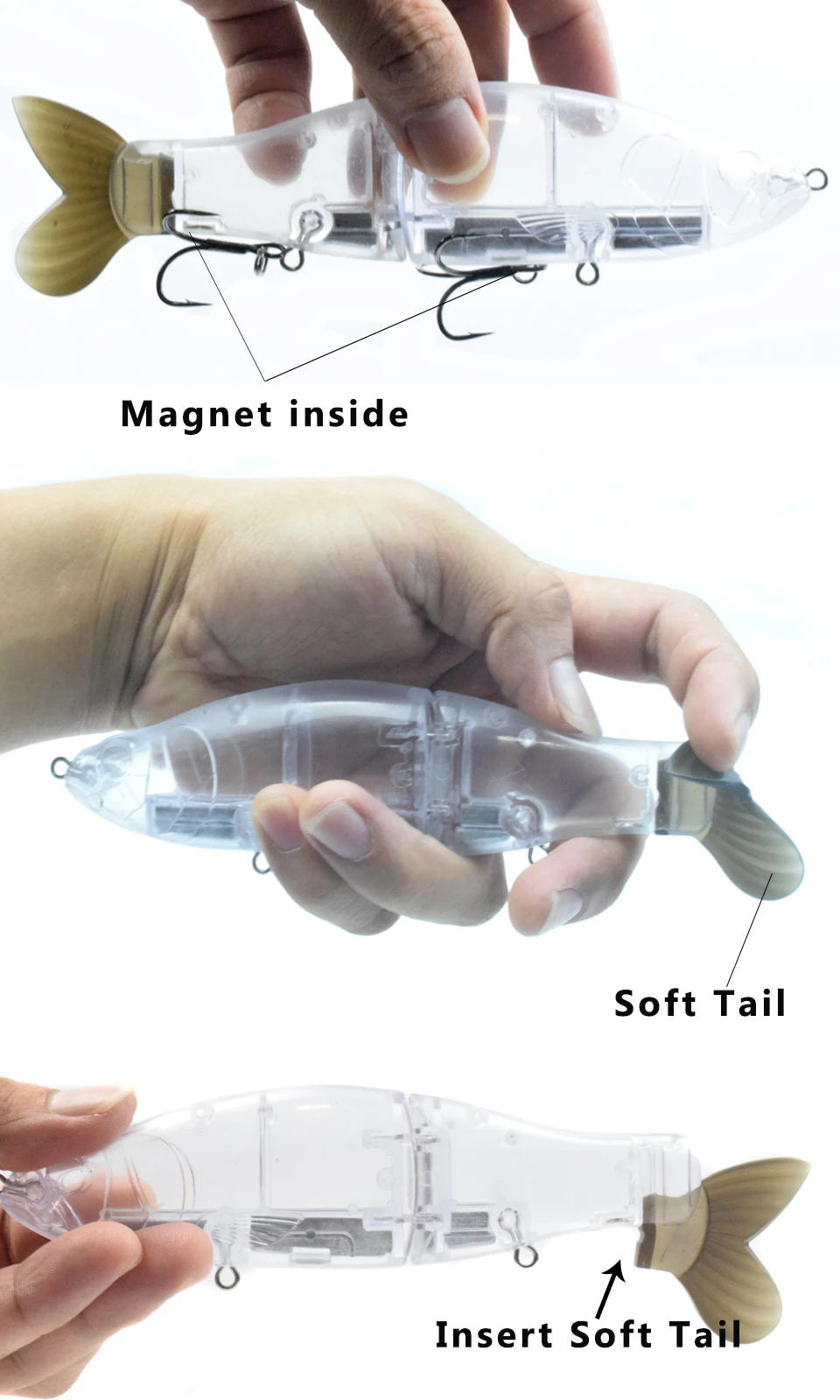 CCLTBA 6,5 pulgadas Megnetic peso sin pintar Glide señuelo cebo de pesca en blanco transparente suave cola tobogán Swimbait Wobbler aparejos de pesca