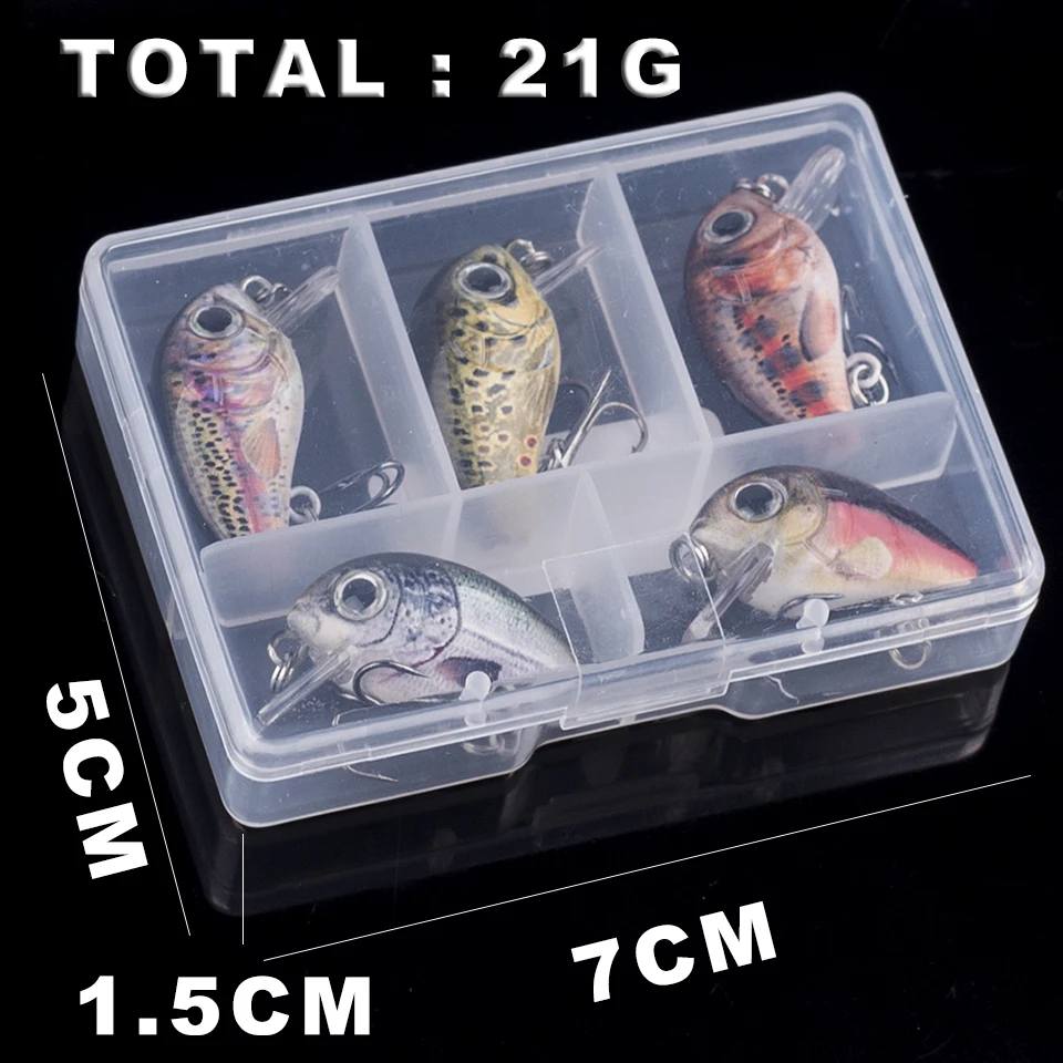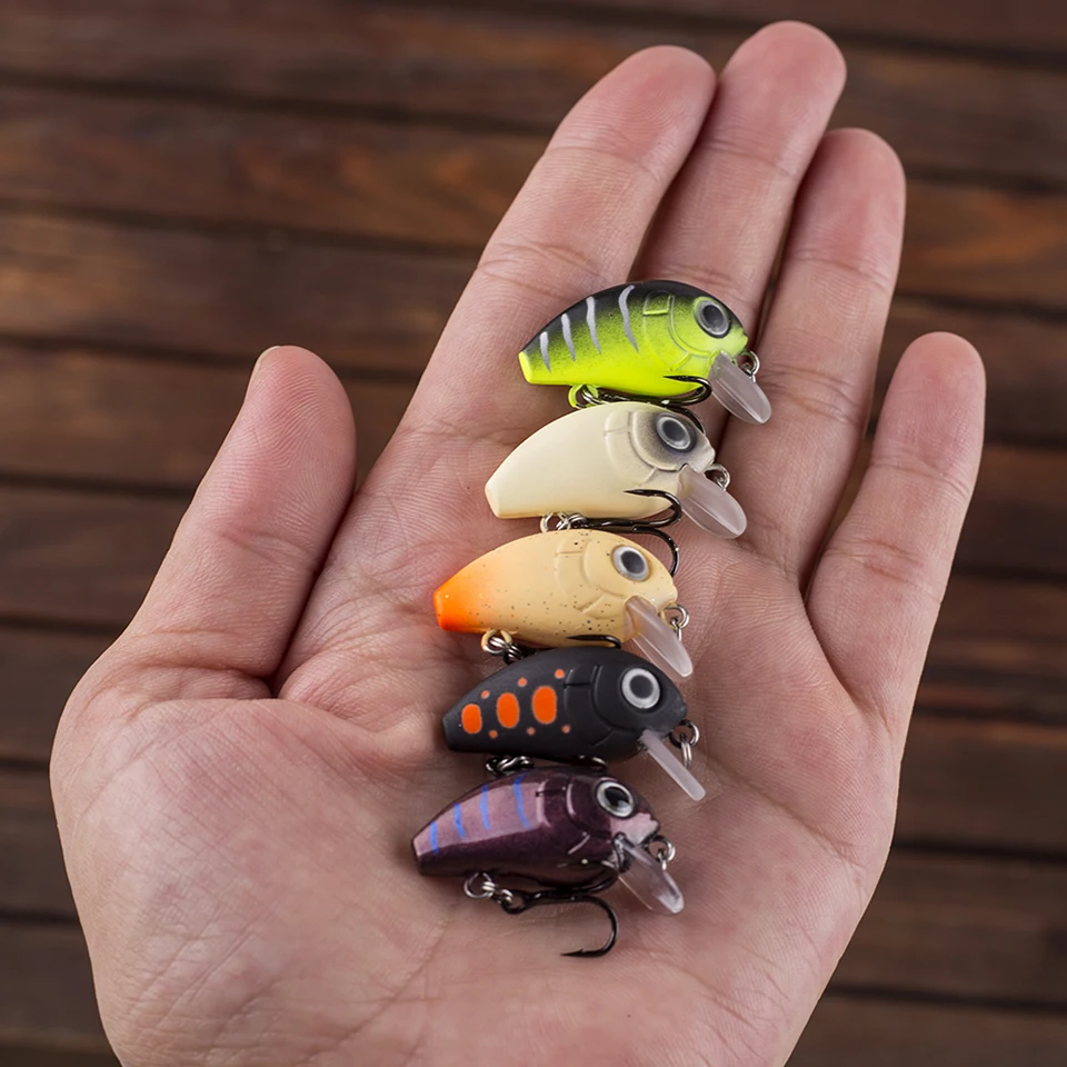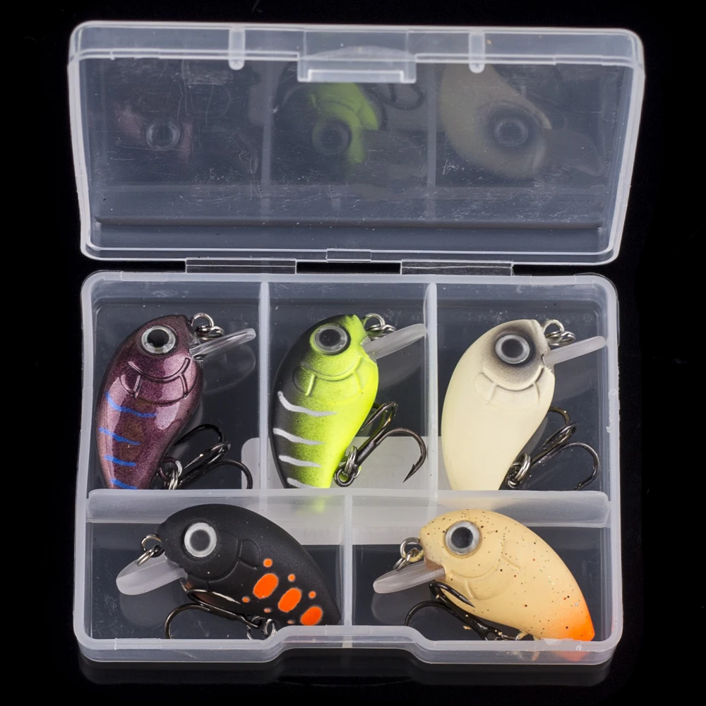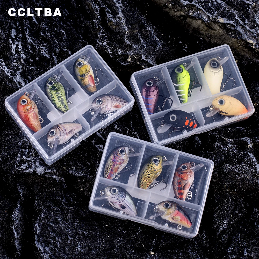 CCLTBA 5 unids/caja Mini Crankbait señuelo de pesca de hundimiento lento de alta calidad cebo Artificial Wobbler duro para aparejos de pesca de lubina
