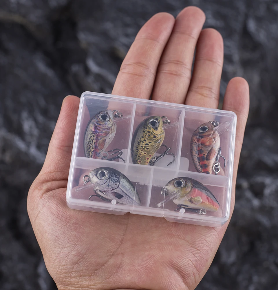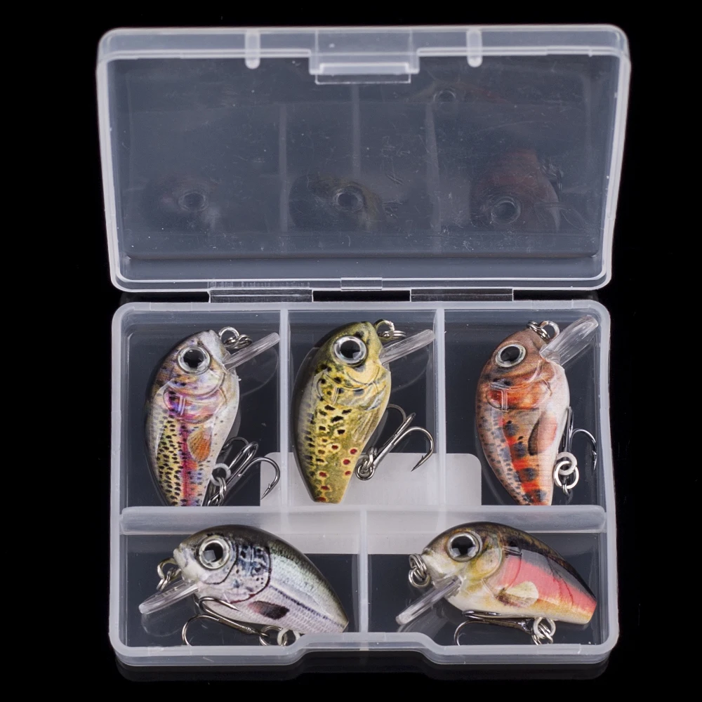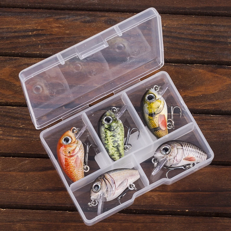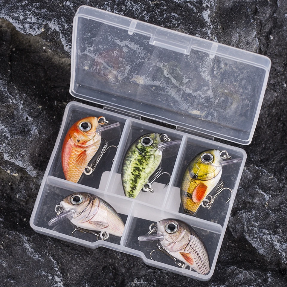 CCLTBA 5 unids/caja Mini Crankbait señuelo de pesca de hundimiento lento de alta calidad cebo Artificial Wobbler duro para aparejos de pesca de lubina
