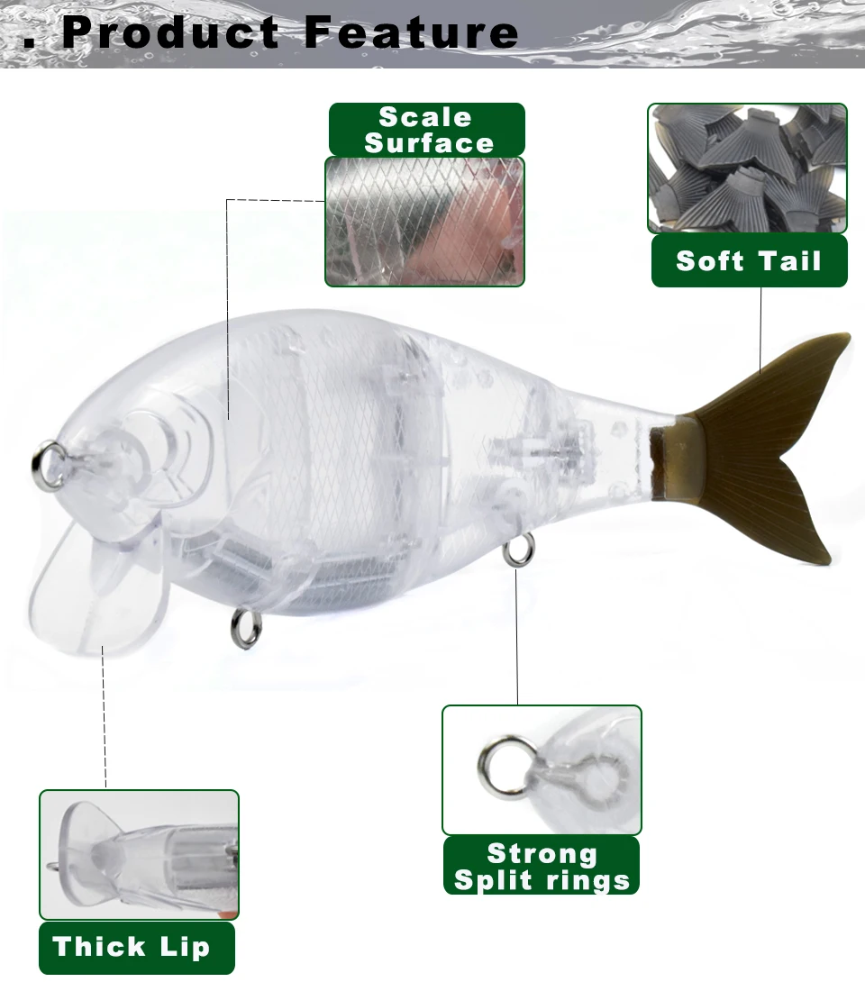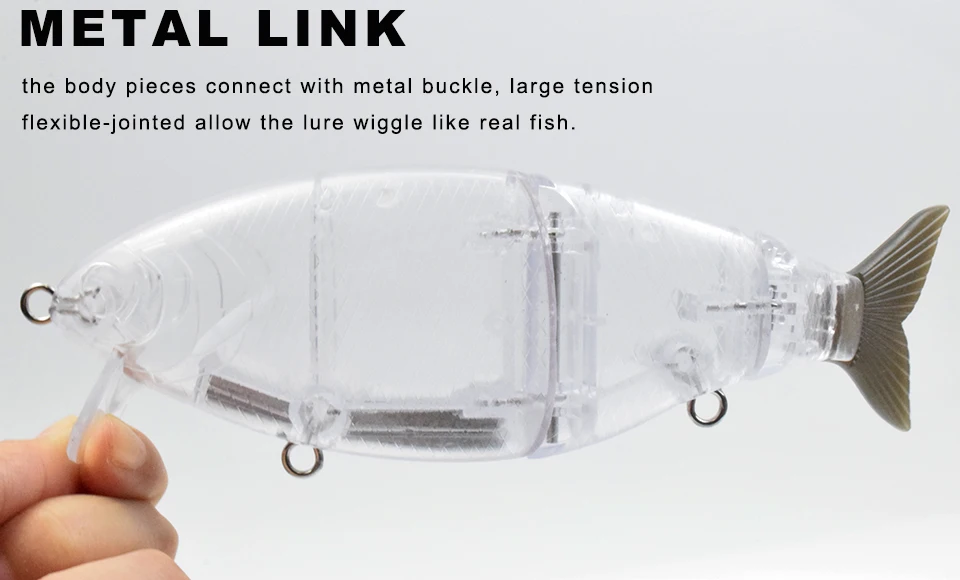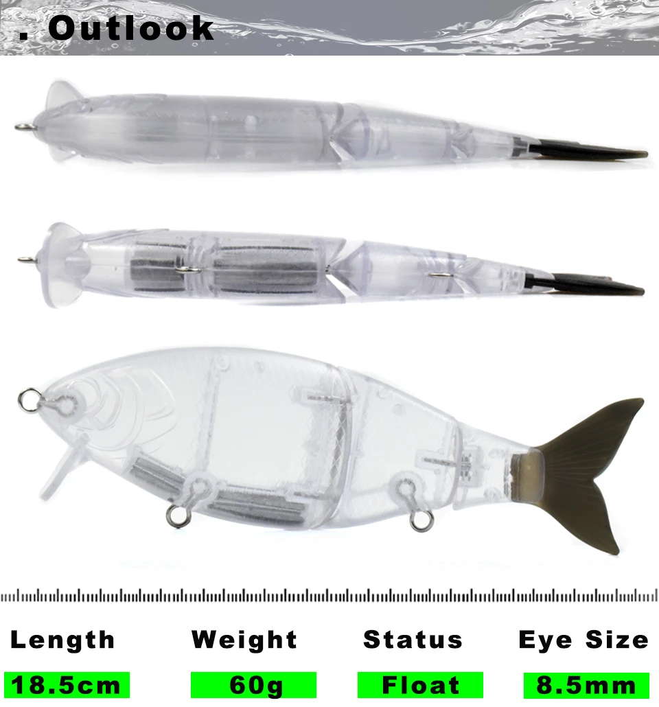 CCLTBA Topwater Wobbler Swimbait señuelo de pesca 18,5 cm 60G 3 segmentos cebo articulado sin pintar sábalo en blanco flotante enlace de Metal señuelo de cola suave