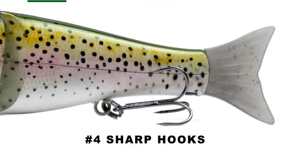 * Top Swimming Glide Bait Hard Body Swimbait es un cebo deslizante de natación errático con escaneo 3D ultra realista. * Se desliza de lado a lado en recuperación lenta y su movimiento aumenta en un pop de la caña. * Viene equipado con ganchos y anillos de alta calidad. * Es mortal en lubina de boca grande, boca pequeña, manchada y rayada.