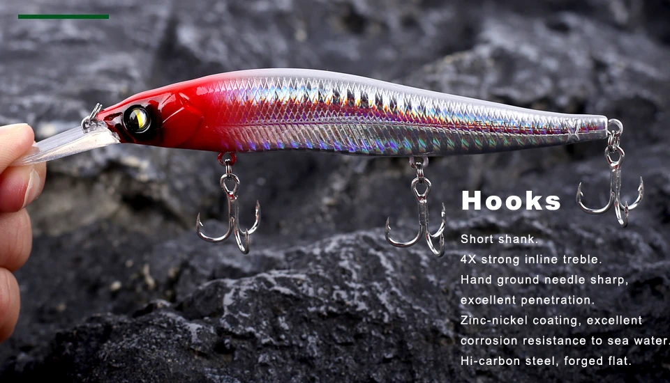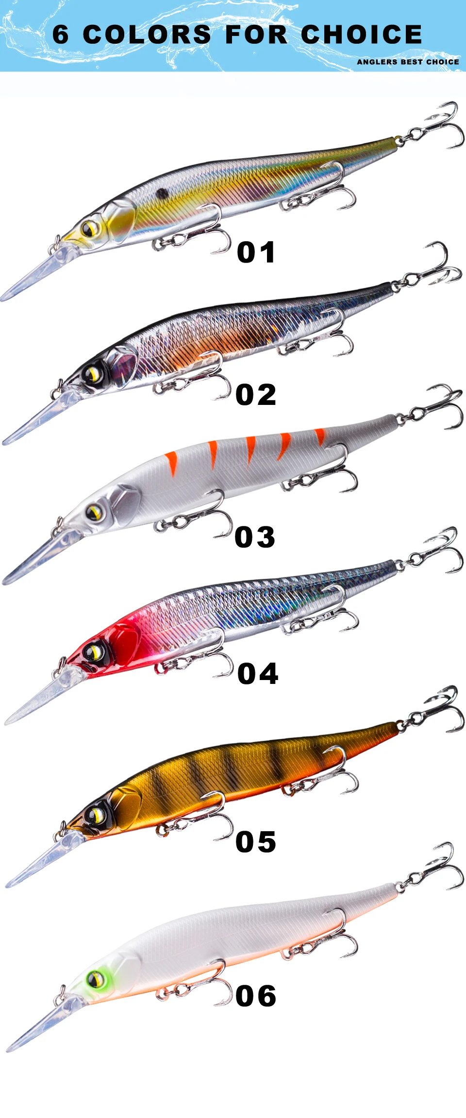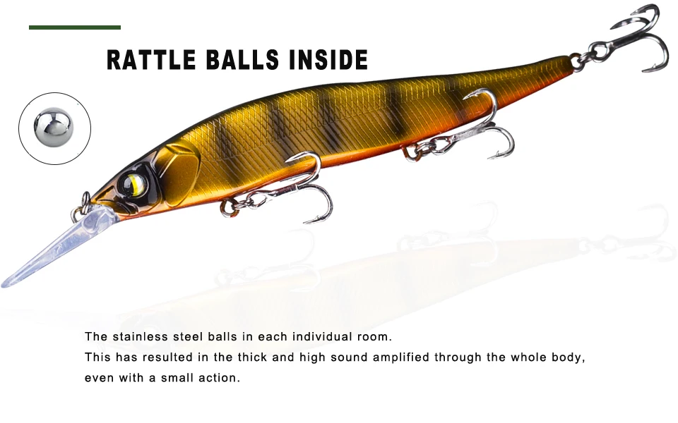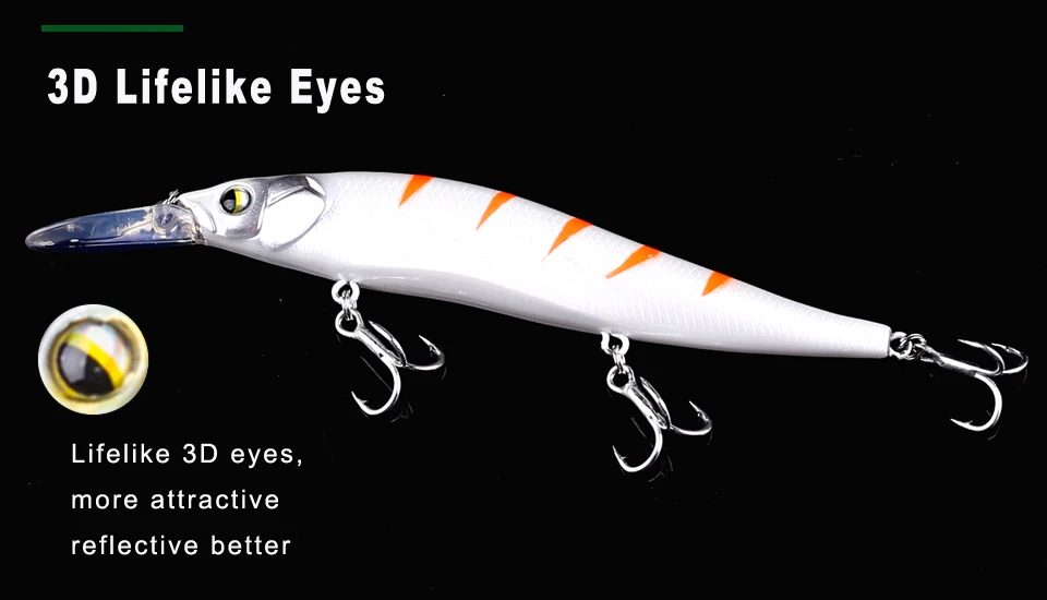 Este cebo duro es uno de los mejores accesorios en su caja de aparejos. Tiene apariencia y color realistas y puede crear acciones de natación realistas en el agua para provocar que el depredador muerda. Si usted es un entusiasta de la pesca, tome este señuelo de pesca y aumentará sus capturas y le traerá mucha diversión.