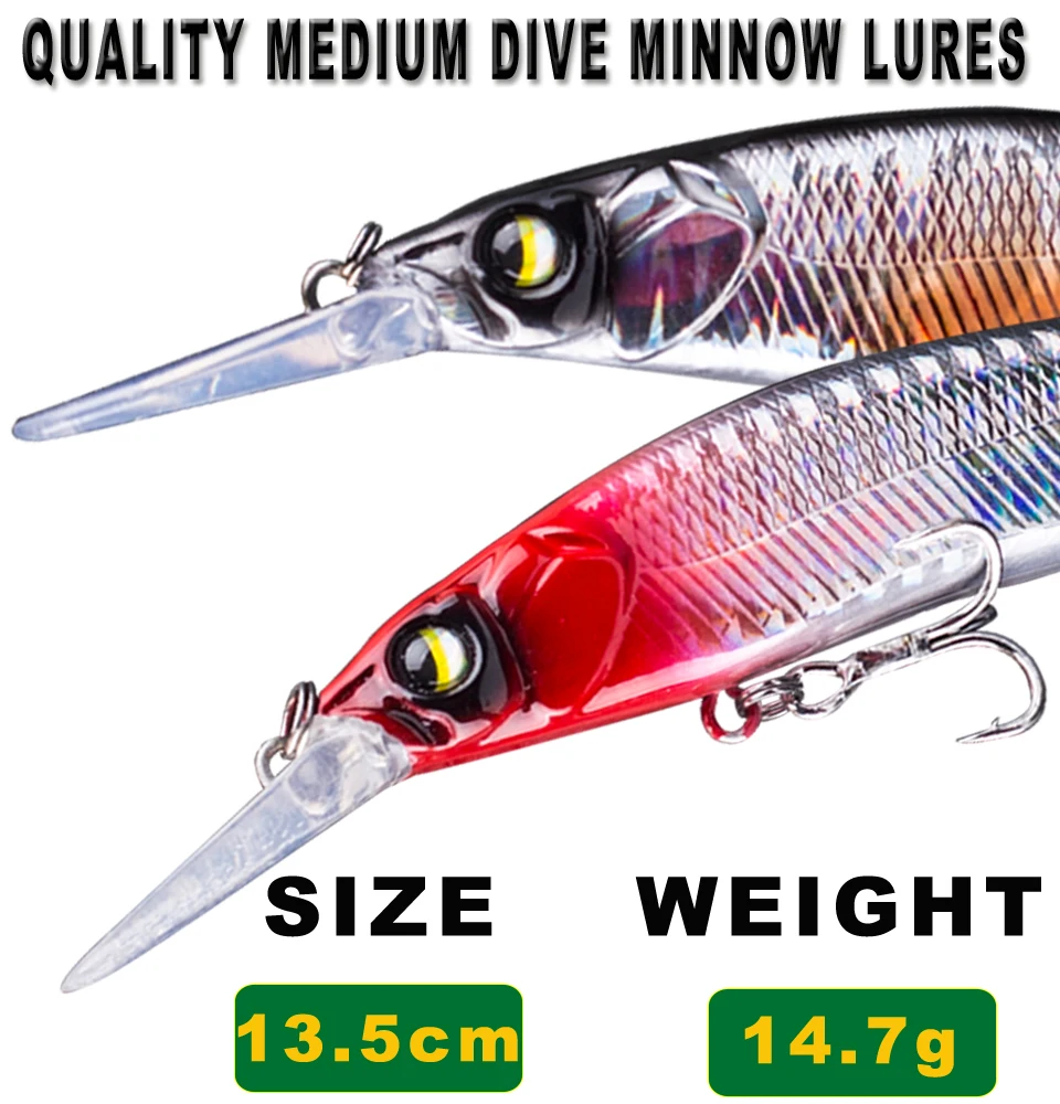 CCLTBA 13,5 cm 14,7G medio buceo Minnow Señuelos de Pesca cebos artificiales duros bamboleo para lubina trucha señuelo Jerkbait aparejos de pesca