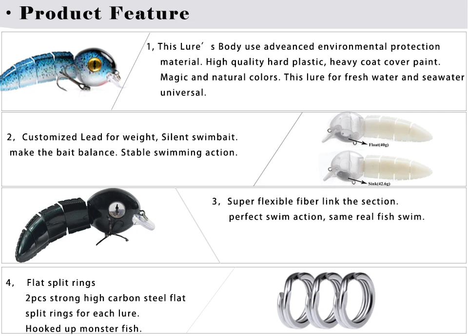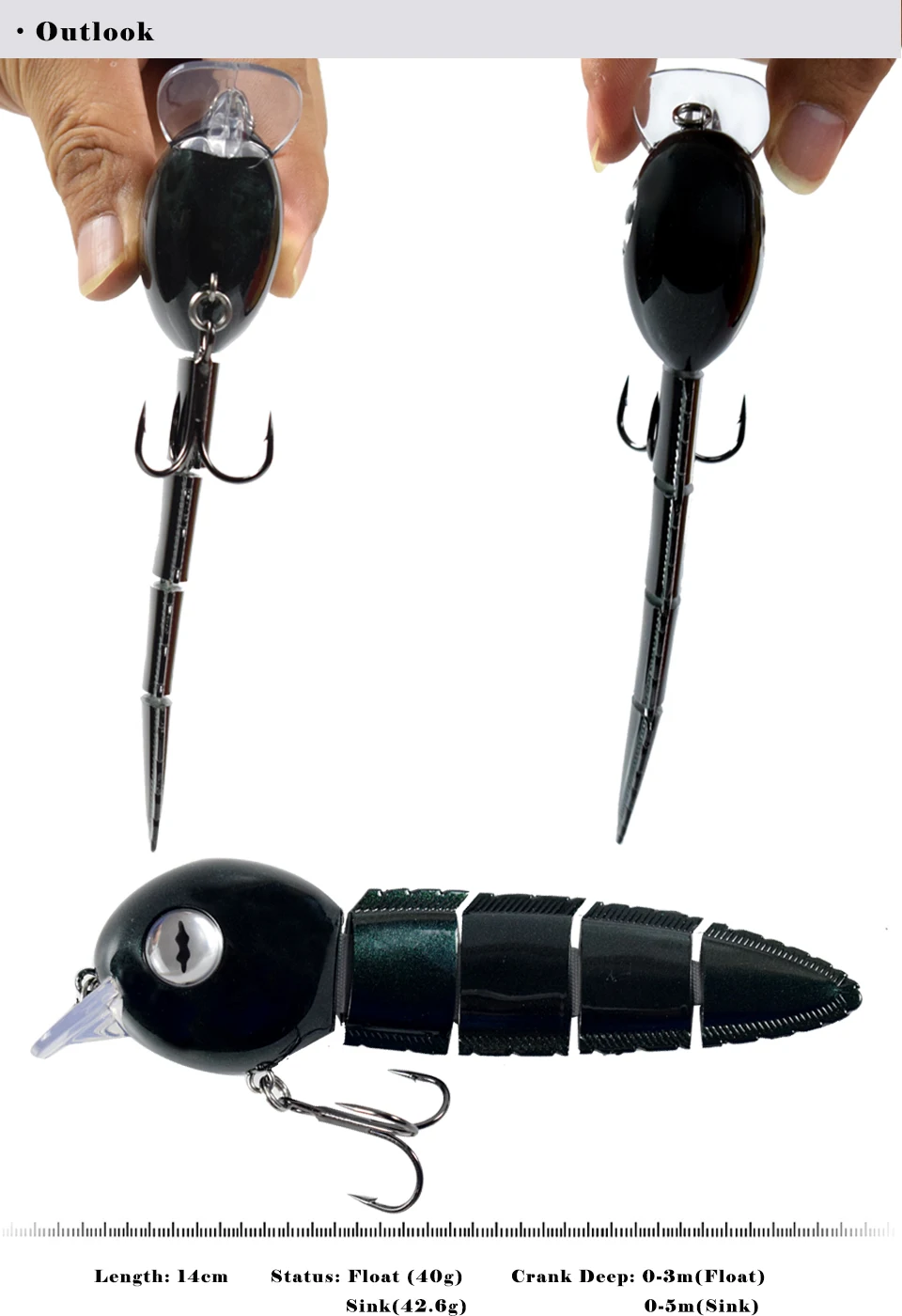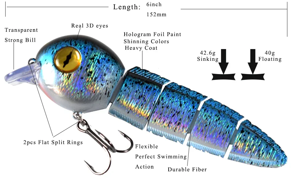 152MM 40G Durable Fabric Wobbler Fishing Lures Life Like Swim Action Jointed Wobbler Fishing Tackle for Pike Musky Bass Fishing