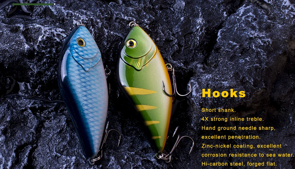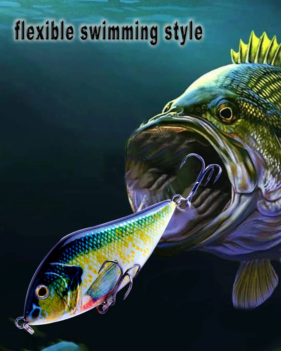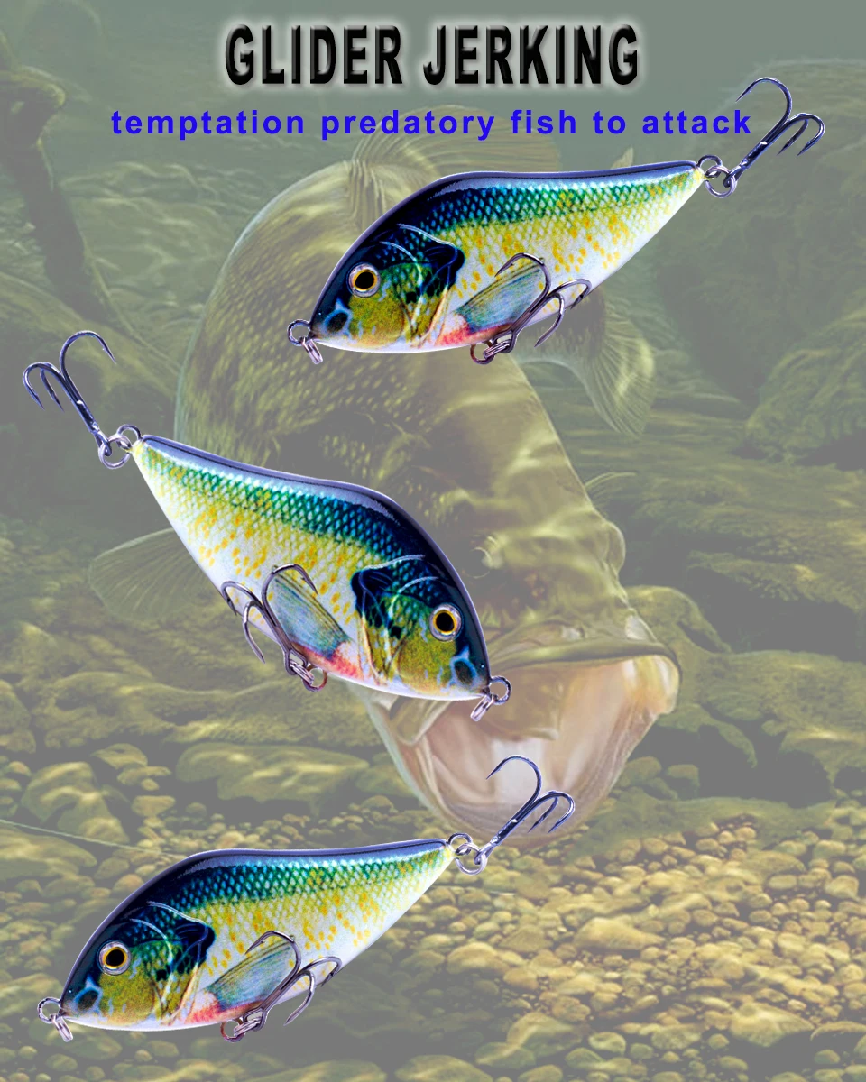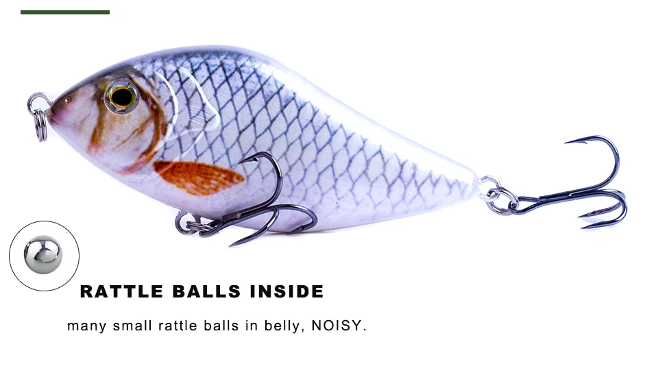 3) Estructura general: la estructura interna utiliza la bola de acero para equilibrar la conducción. Cuando Tomas la línea, la bola en el cuerpo se transmite a otras partes y produce sonido, lo que puede llevar al pez a perseguir. La forma está hecha de acero al carbono con 2 anzuelos triples súper afilados para garantizar que los peces no se escapen. Esos jerkbaits son ideales para capturar especies marinas y de agua dulce.
