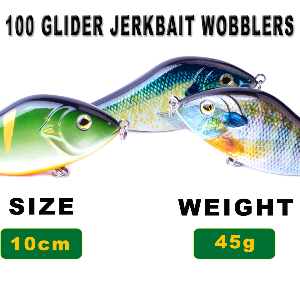 CCLTBA 10cm 45g fregadero Wobbler Jerkbait señuelos sonajero Glide Lipless Crankbait para Muskie Pike cebo de pesca aparejos