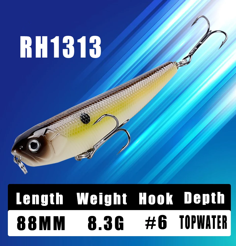 CCLTBA Topwater Wobblers 8,8 cm 8,3g cebos duros lápiz Señuelos de Pesca señuelo de sonajero Artificial para aparejos de pesca bajo perca cebo