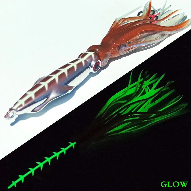 Cebo de alambre de plantilla de paso lento, cabeza de Metal Inchiku, falda de pulpo, señuelo de Pesca Jigging, 60g, 100g, 120g, 150g, 200g, 1 unidad