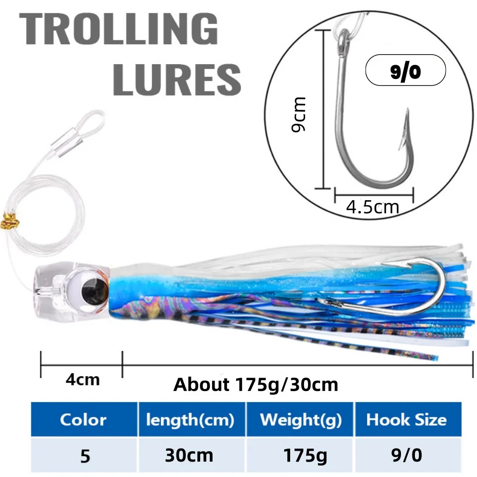 Cebo de arrastre de 175g, cebo acrílico suave de pulpo, cebo falso biónico de resina, para pesca en el mar, equipo de pesca