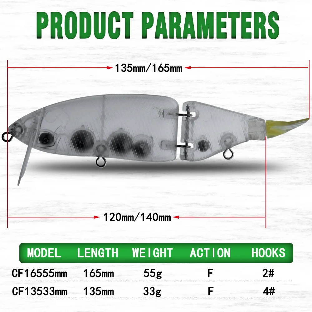 Cebo articulado de 165mm, 60g, Señuelos de Pesca Swimbait, cuerpo duro flotante, Lucio articulado, aparejos de pesca