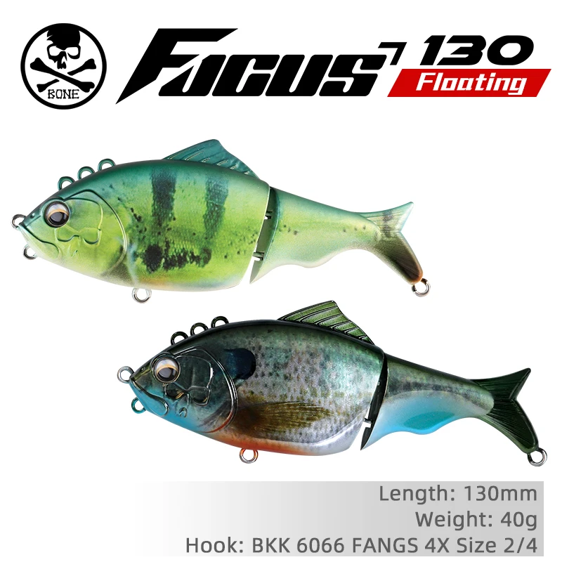Bone Focus Cebo articulado versátil 130MM 40G Señuelo flotante Cebo duro Señuelos de cebo artificiales para pesca Vibración con anzuelo BKK