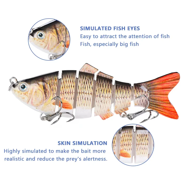 El cebo artificial duro empalmado de 7 secciones imita la vida marina real, atrayendo a los peces con su curvatura biomimética.